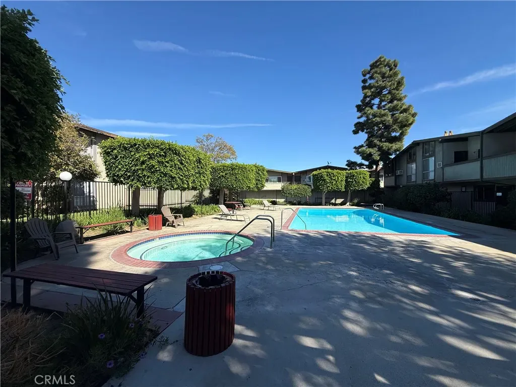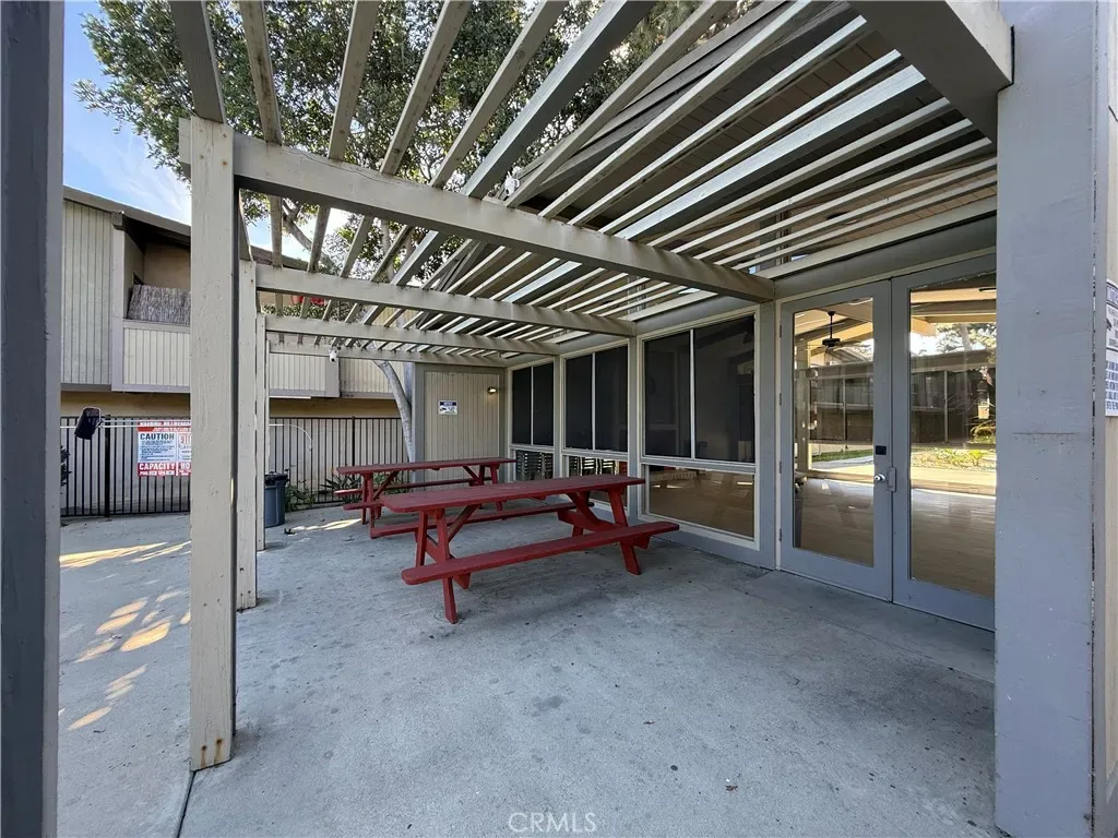 The unit comes partially furnished with ample storage throughout and a window air conditioning unit. Residents have access to community amenities including a pool, spa, clubhouse, BBQ areas, and landscaped walking paths. Lease terms include water and trash, two assigned covered carport spaces, and 24/7 on-site maintenance. Laundry facilities are located very close to the unit for added convenience.
