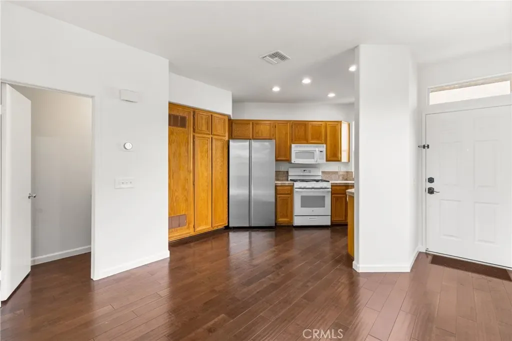 Spectacular corner location with wrap-around backyard featuring lush woods and mountain views that create a private, peaceful retreat with no homes in sight! Nestled in the highly desired Dakota community of Wagon Wheel, this charming and immaculate, 2-story townhome unit offers an open concept main floor living/entertaining area with two en-suite bedrooms upstairs. The lower level features an open kitchen with NEW SS refrigerator, spacious family room with granite surround fireplace, powder room and new sliding door to the outdoor living and entertaining areas. The extremely private backyard area features a spacious wrap-around paver-stone patio and new built-in BBQ grill ideal for alfresco dining under the stars. The home features gleaming hardwood floors and new paint throughout that adds a modern touch. The upper level offers 2 spacious primary bedrooms each with their own private bathrooms. Also upstairs, is a laundry area including NEW washer/dryer for your convenience. Two (2) very rare single car garages are included in the lease as well as plentiful guest parking. The community offers a community pool and spa PLUS Ronald G Wells Park is just across the street, offering scenic walking trails and playground for outdoor enjoyment. Don’t miss out on this immaculate home and finest location in the tract!