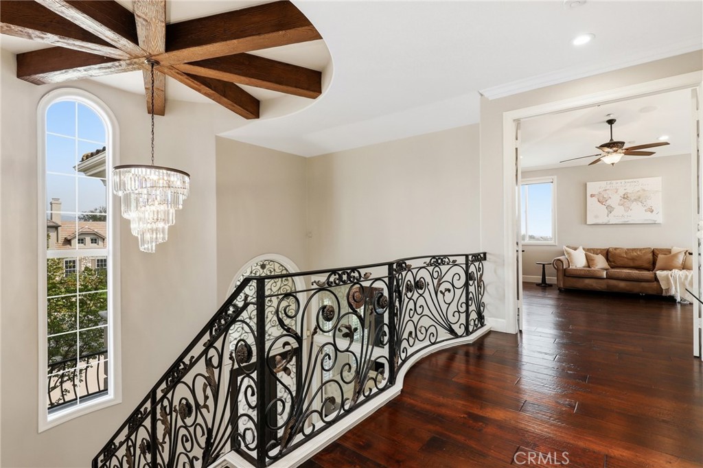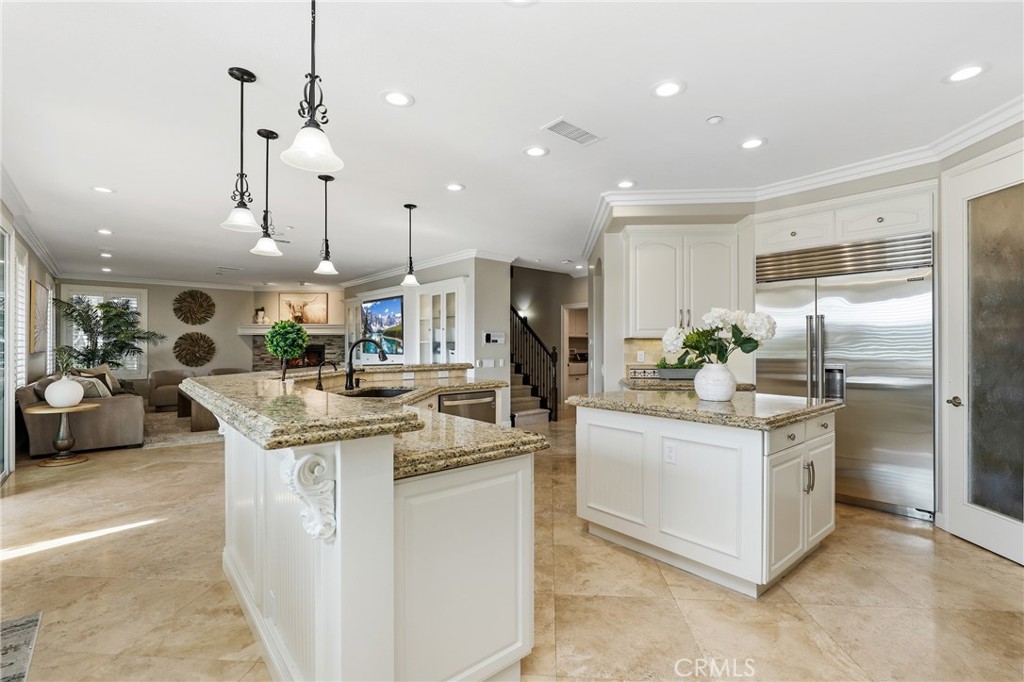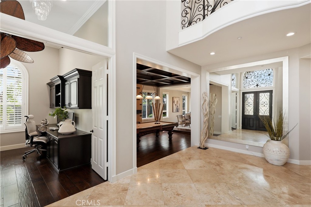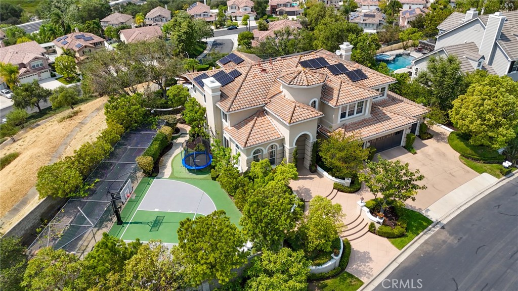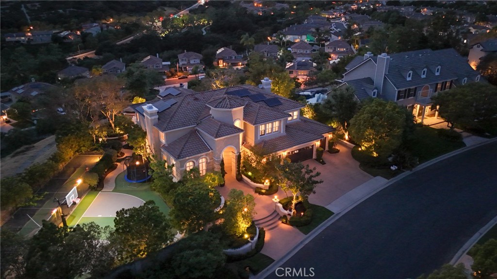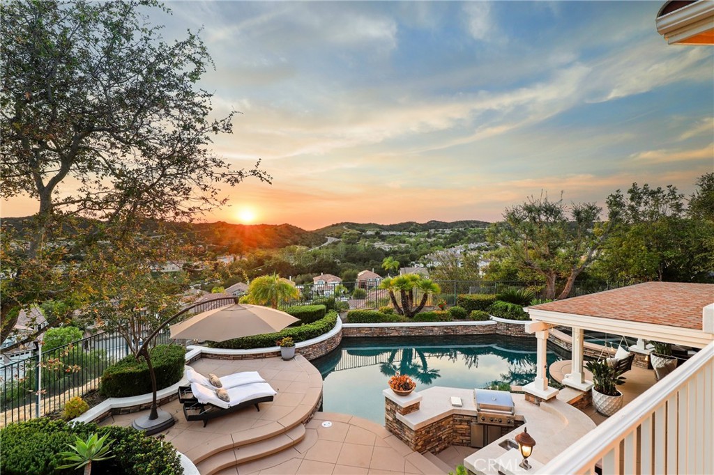 Commanding a premier corner lot within the prestigious Pinnacle enclave of Coto de Caza, 45 Panorama captures sweeping panoramic vistas and unforgettable sunset views, offering a truly exceptional living experience behind the gates. This expansive residence is thoughtfully designed for both grand entertaining and everyday comfort, featuring five bedrooms, four-and-a-half baths, a private office, and an oversized bonus room. From the moment you enter through the double doors, you’re welcomed by soaring ceilings, abundant natural light, and a sense of scale that immediately sets the tone. The heart of the home is a chef’s kitchen designed to impress—complete with dual center islands, generous seating, professional-grade stainless steel appliances, and a sunlit breakfast nook that frames picturesque backyard views. Seamlessly connected, the adjoining family room offers a warm yet sophisticated ambiance with custom built-ins and a striking stone fireplace. Upstairs, the primary suite is a true retreat—offering elevated ceilings, a private sitting area, and a view balcony that showcases the home’s breathtaking surroundings. The spa-inspired bath features a soaking tub, oversized walk-in shower, dual vanities, and refined finishes throughout. Secondary bedrooms are well-appointed, including a Jack-and-Jill layout and an en-suite guest room, while the versatile bonus room provides endless possibilities. Designed for resort-style living, the backyard is an entertainer’s dream. Enjoy a sparkling pool and spa, outdoor kitchen and BBQ island, covered lounge areas, and unique recreational features including a sport court, putting green, and batting cage—all set against a backdrop of expansive views. UPGRADES Include, House is Fully Re-piped with PEX, Fully PAID SOLAR with 3 TESLA Power Walls and dual EV charging plug ins and direct access to the 4 car garage. Residents of Coto de Caza enjoy access to world-class amenities including championship golf, equestrian facilities, scenic trails, and an exclusive club lifestyle, all within one of Orange County’s most coveted guard-gated communities.