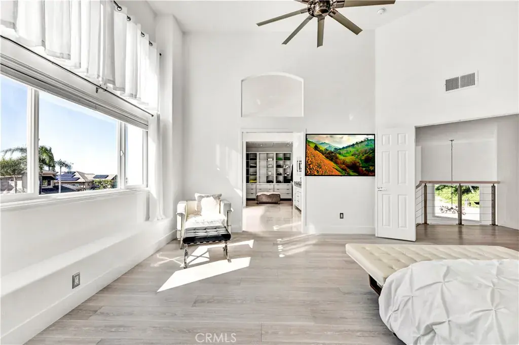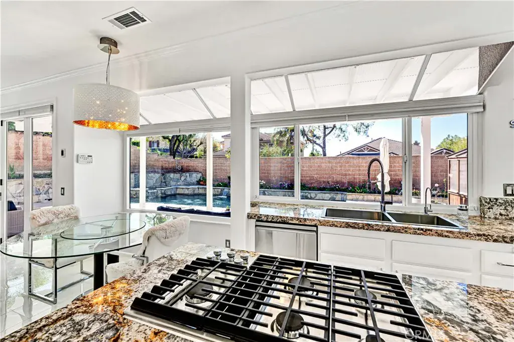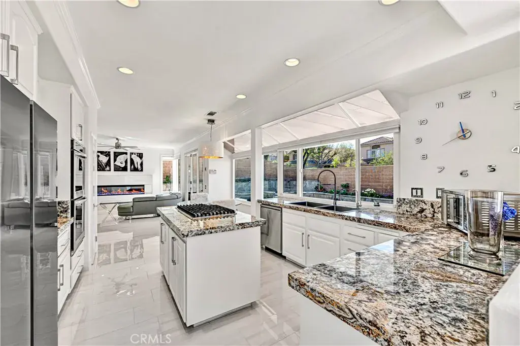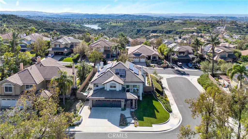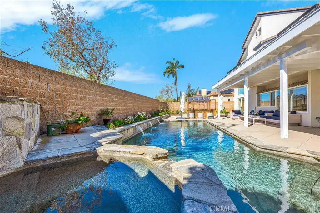Looking for a stunning home? Located in the foothills of the Saddleback Mountains. Welcome to 32822 Brookseed Drive, where location, sophistication, and modern design come together beautifully. Set on a desirable corner lot, this exceptional home is nestled in the Trabuco Highlands community of Robinson Ranch. The grand entry showcases a striking modern staircase and soaring vaulted ceilings. Stacked clerestory windows enhance the sense of volume while giving an abundance of natural light. Gleaming polished porcelain tile floors extend throughout the downstairs and upstairs bathrooms. The floors are heated by room, with each room having its own temperature control. The family room’s electric fireplace serves as a focal point and provides supplemental heat. The family room, kitchen, and dining area are connected and all feature windows and doors overlooking the saltwater pool, raised planters, and surrounding gardens, creating a seamless indoor-outdoor flow. The kitchen is both stylish and functional, featuring a center island with a new downdraft cooktop, stainless steel appliances and an oversized double sink. Ample cabinetry and generous counter space make this kitchen ideal for both everyday living and entertaining. A downstairs bedroom and full bathroom provide flexibility for guests or extended family. The bathroom has been updated with a newly custom-tiled shower, frameless glass enclosure, backlit mirror and new hardware. The laundry room continues the home’s modern style and includes a large utility sink, abundant counter space, and cabinets. The upstairs transitions to engineered wood flooring in the main living areas. The primary suite has the comfort and elegance of a 5-star resort. The spacious bedroom has a warmth which includes a fireplace. The primary bathroom is expansive and beautifully appointed, featuring a long dual vanity with abundant storage, stone countertops, modern fixtures, multiple illuminated mirrors and a sleek custom walk-in shower. The walk-in closet is exceptionally designed, offering extensive custom built shelving, drawers, and hanging space. There are two additional bedrooms upstairs along with a beautiful, well-appointed bathroom. The home has a water softener and paid solar power. Garage has EV charging, epoxy flooring, and side mounted garage door openers. Each space in the home has been thoughtfully planned to balance luxury, practicality, and modern living for the most discriminating buyer.