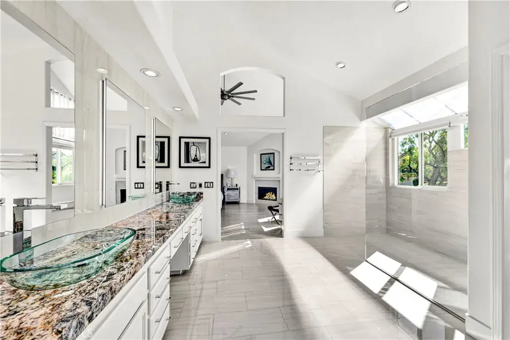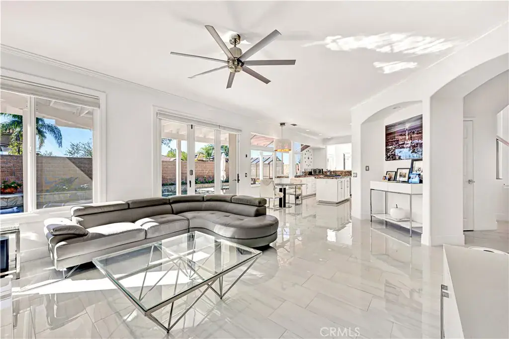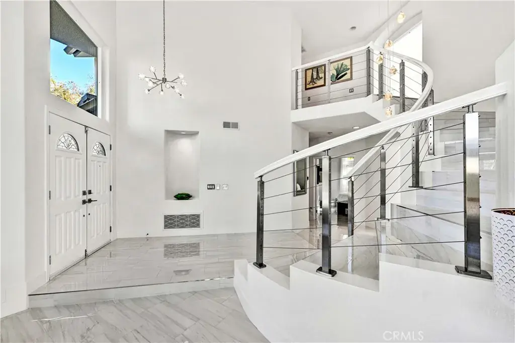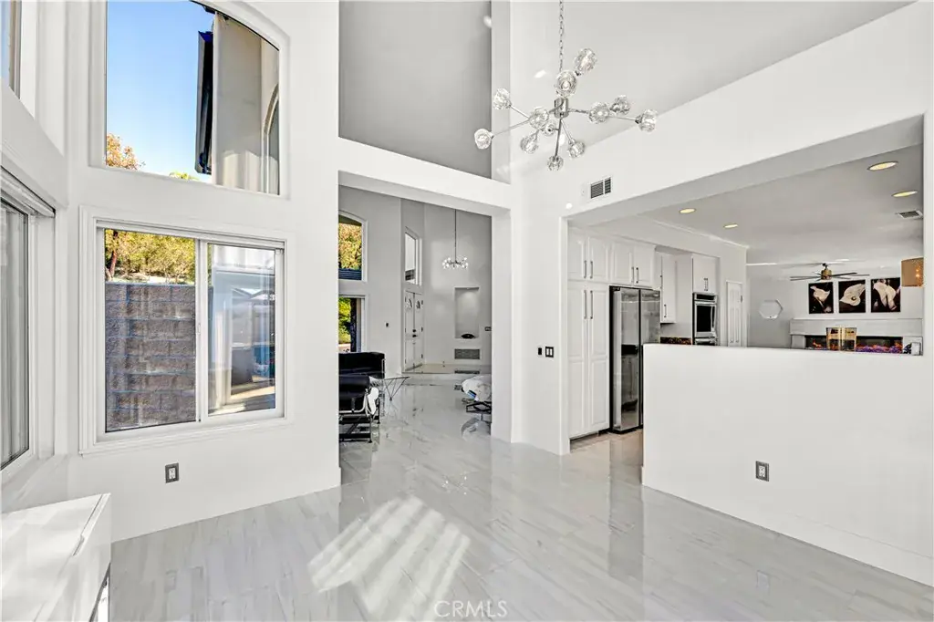 Looking for a stunning home? Located in the foothills of the Saddleback Mountains. Welcome to 32822 Brookseed Drive, where location, sophistication, and modern design come together beautifully. Set on a desirable corner lot, this exceptional home is nestled in the Trabuco Highlands community of Robinson Ranch. The grand entry showcases a striking modern staircase and soaring vaulted ceilings. Stacked clerestory windows enhance the sense of volume while giving an abundance of natural light. Gleaming polished porcelain tile floors extend throughout the downstairs and upstairs bathrooms. The floors are heated by room, with each room having its own temperature control. The family room’s electric fireplace serves as a focal point and provides supplemental heat. The family room, kitchen, and dining area are connected and all feature windows and doors overlooking the saltwater pool, raised planters, and surrounding gardens, creating a seamless indoor-outdoor flow. The kitchen is both stylish and functional, featuring a center island with a new downdraft cooktop, stainless steel appliances and an oversized double sink. Ample cabinetry and generous counter space make this kitchen ideal for both everyday living and entertaining. A downstairs bedroom and full bathroom provide flexibility for guests or extended family. The bathroom has been updated with a newly custom-tiled shower, frameless glass enclosure, backlit mirror and new hardware. The laundry room continues the home’s modern style and includes a large utility sink, abundant counter space, and cabinets. The upstairs transitions to engineered wood flooring in the main living areas. The primary suite has the comfort and elegance of a 5-star resort. The spacious bedroom has a warmth which includes a fireplace. The primary bathroom is expansive and beautifully appointed, featuring a long dual vanity with abundant storage, stone countertops, modern fixtures, multiple illuminated mirrors and a sleek custom walk-in shower. The walk-in closet is exceptionally designed, offering extensive custom built shelving, drawers, and hanging space. There are two additional bedrooms upstairs along with a beautiful, well-appointed bathroom. The home has a water softener and paid solar power. Garage has EV charging, epoxy flooring, and side mounted garage door openers. Each space in the home has been thoughtfully planned to balance luxury, practicality, and modern living for the most discriminating buyer.