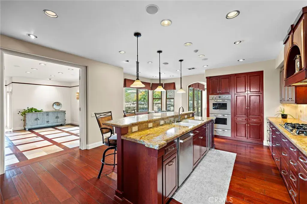 Distinguished Robinson Ranch Estate where mountain serenity meets resort caliber living. Framed by breathtaking mountain views and designed for both grand entertaining and intimate moments, this six-bedroom, four-and-a-half-bath home is a private sanctuary in one of Orange County’s most coveted communities. Beyond the front doors, an expansive, beautifully remodeled interior unfolds—where thoughtful design meets timeless elegance. A stunning gourmet kitchen anchors the home, showcasing custom cabinetry, upgraded professional-grade appliances, and generous spaces for gathering. Every detail has been carefully curated, from the remodeled baths to the upgraded roof and windows, blending beauty with enduring quality. Dual staircases and separate upstairs bedroom wings create the feel of two homes in one—ideal for multi-generational living or added privacy.