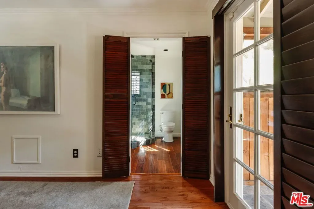 Tucked into a quiet hillside, this Tujunga retreat blends refined design with a sense of warmth and creative possibility. The main level offers 3 bedrooms and 2 baths, including a primary suite with en-suite bath and adjoining sunroom. A spacious living room anchors the home with soaring ceilings, a stone-clad fireplace, and stained glass windows, while the updated kitchen frames treetop views. Below, a fully independent creative suite unfolds with kitchenette, full bath, and bonus areas; well-suited for a studio, workspace, or guest quarters. Layered outdoor spaces include an expansive deck, a back patio with hot tub, and a hilltop gazebo that captures the natural beauty and quiet of Tujunga. Gated entry and covered parking complete the offering. A rare balance of a spacious layout, privacy, and creative potential in a stunning natural setting.