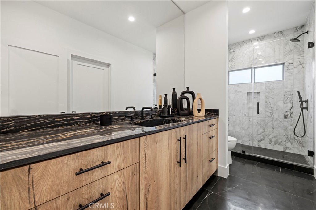 Quietly tucked away on an idyllic cul-de-sac in the hills of Tujunga, this Entirely reimagined and thoughtfully redesigned 3,600sqft 3BD/3BA with an additional 1BD/1BA Guest Unit showcases refined luxury and meticulous craftsmanship throughout. The main home offers an open, light-filled layout anchored by a designer chef’s kitchen with Thermador Appliances, highlighting imported stone surfaces, custom cabinetry, and a striking wine glass display accent. The oversized Master Suite is spacious and features high ceilings along with a large walk-in closet. Every detail has been carefully curated, blending elevated finishes with modern functionality. Natural light envelops nearly every corner of the interior, most notably in the living and bedroom areas. The rear grounds offer a harmonious mix of both hardscape and landscape, complimented by tranquil mountain views. The private 1BD/1BA guest unit offers many uses and includes its own separate entrance and full kitchen, ideal for extended family or guests. Here’s your opportunity to own a turnkey home offering versatility, sophistication, and timeless design.