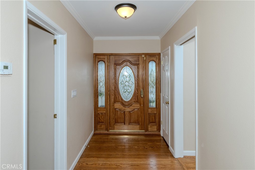 $70,000 Price improvement! Now $1,299,999! Charming Tustin Pool home invites you to be the new owner. Single story corner lot 3 bedroom, 3 bath with additional space perfect for home office. Quartz counter kitchen, 6 burner gas cooktop, lots of cabinets and counterspace. Breakfast nook. Wood flooring throughout. Cozy fireplace in living room. View the pool area from living and dining. Primary bedroom ensuite offers door to access pool. Great outdoor entertainer covered patio area ready for summer, includes TV and bar. Fenced pool for safety, of course. Vinyl windows. Central heat and a/c. 2 Car direct access garage. Generous parking area for extra cars. New roof.