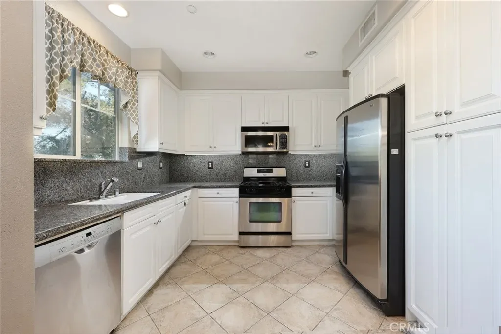 Beautiful corner home located in the highly acclaimed Irvine School District with abundant natural light and soaring ceilings. This 3-story residence features 3 bedrooms, each with its own attached bathroom. Main floor bedroom with en-suite bath is ideal for guests or multi-generational living. The second level offers an upgraded kitchen with granite countertops, tile flooring, and stainless steel appliances, opening to the dining and living areas with laminate wood floors, fireplace, and powder room. Secondary bedroom includes en-suite bath, walk-in closet, and private balcony. Third-level primary suite features a spacious retreat, dual sinks, walk-in closet, and elegant chandelier lighting. Plantation shutters, ceiling fans throughout, beveled countertops, and wired for cable/internet. HOA amenities include pool, spa, clubhouse, BBQ, park, tot lot, picnic area, and half basketball court. Close to The District, Market Place, Harvard Sports Park, Metrolink, and easy access to 5, 405, 55 & 261 freeways.