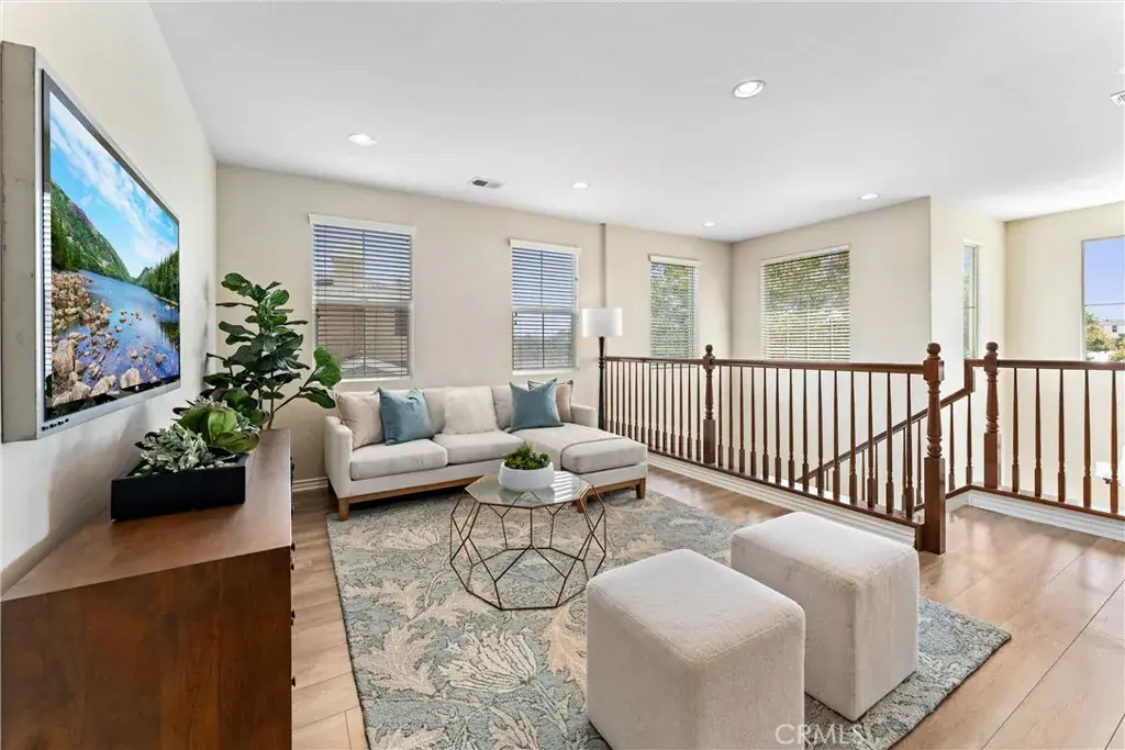Welcome to 3229 Larkspur Street — where everyday living feels elevated. Nestled in the highly desirable Columbus Grove community, this beautifully upgraded 4 Bedroom + Loft, 3 Bathroom home offers 2,416 sq.ft. of bright, open living space designed for comfort and ease. Step inside to a dramatic two-story foyer that leads into a spacious Great Room featuring a cozy fireplace and media niche, ideal for gatherings both large and small. The chef’s kitchen is as stylish as it is functional, showcasing granite countertops, stainless steel appliances, an oversized center island, and a generous walk-in pantry. Just beyond, the adjacent patio creates a seamless indoor-outdoor connection—perfect for entertaining. The main level includes a full bedroom and bathroom with a walk-in closet, offering flexibility for guests, multigenerational living, or a private home office. Upstairs, the versatile loft provides an ideal bonus space, whether for a child’s playroom, gym, workspace, or second living area. Two secondary bedrooms share a well-appointed bath with dual vanities, while the primary suite serves as a true retreat with dual closets, a soaking tub, and a separate walk-in shower. Outside, unwind in your private backyard sanctuary with no neighbors behind you, complete with a gas-plumbed fire pit and sleek hardscaping for easy entertaining or quiet evenings. An additional plus, this home excludes carpeted areas, with hardwood flooring downstairs, luxury vinyl plank upstairs, and tile in all bathrooms. Columbus Grove offers more than just a home—enjoy low HOA dues, top-rated Irvine schools, and resort-style amenities including a junior Olympic pool, spas, parks, tot lot, sport courts, and year-round community events. With quick access to John Wayne Airport, the 5 & 405 freeways, Newport Beach, and premier shopping and dining at The District, The Market Place, and South Coast Plaza, you’re truly at the center of it all.