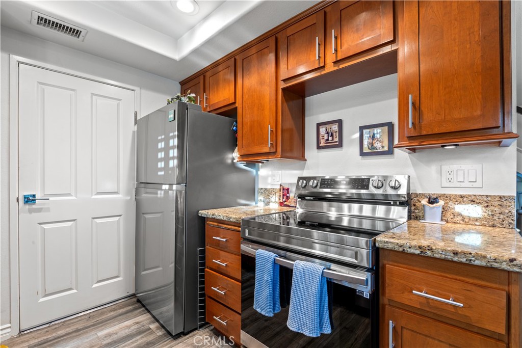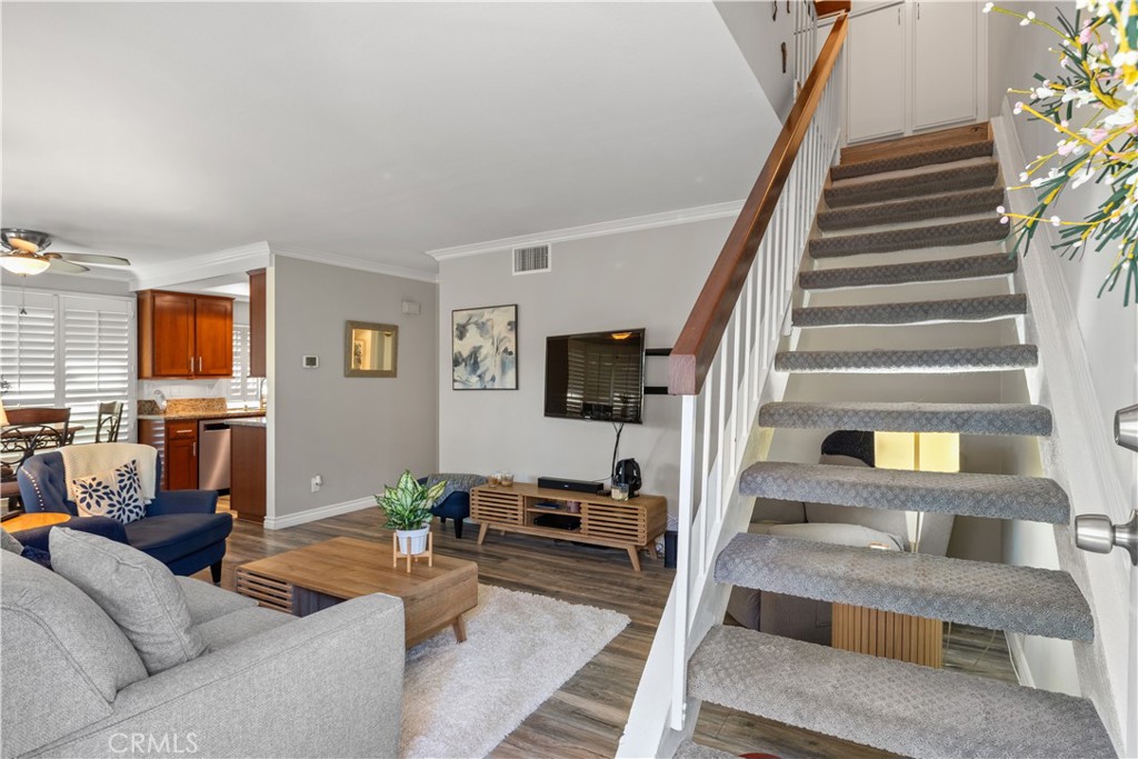 Buyer cancelled, just changed their mind. Welcome to this stunning, turnkey condominium nestled in the highly sought-after Briarcliff Village gated community, perfectly positioned in one of the best locations with no one above or below, attached on only one side offering added privacy. This light-filled home showcases pride of ownership throughout, featuring dual-pane windows adorned with elegant shutters, and beautiful laminate flooring that flows seamlessly through most of the home. The thoughtfully designed kitchen boasts rich wood cabinetry, granite countertops, stainless steel appliances, recessed lighting, and a charming window overlooking the lush private patio. Enjoy the convenience of direct garage access. Adjacent to the kitchen, the dining area opens via sliding doors to a serene outdoor retreat complete with vibrant flowers and low-maintenance artificial grass, ideal for relaxing or entertaining. The spacious living room is enhanced with crown molding and tall baseboards, creating a refined yet comfortable atmosphere. A stylishly updated powder room is conveniently located on the main level. Upstairs, both bedrooms feature crown molding, high baseboards, ceiling fans, and walk-in closets. The primary suite is a true sanctuary, highlighted by a fully renovated bathroom with a luxurious walk-in shower and a stunning waterfall showerhead. The custom-designed closet includes built-ins with integrated lighting for a boutique-like experience. Additional highlights include an upstairs hallway lined with ample storage cabinets, and a fully drywalled extra long garage equipped with laundry and an entire wall of storage cabinetry. Impeccably maintained and beautifully upgraded, this exceptional home truly has it all—style, comfort, and an unbeatable location. The community pool is a wonderful amenity for our California weather. Added bonus, seller has already paid the $800 HOA special assessment to cover Insurance Premiums. This is one you won’t want to miss!