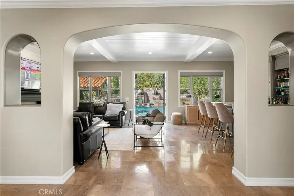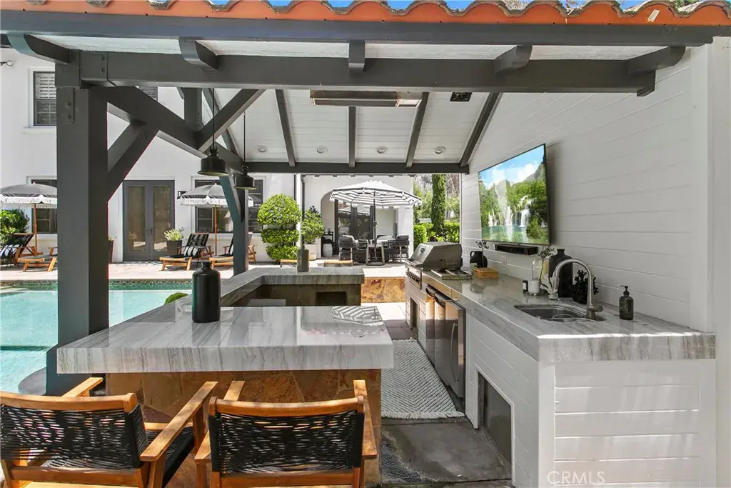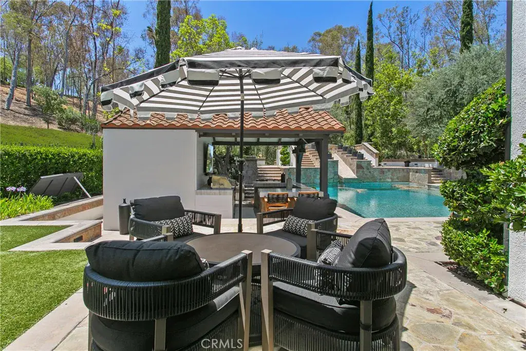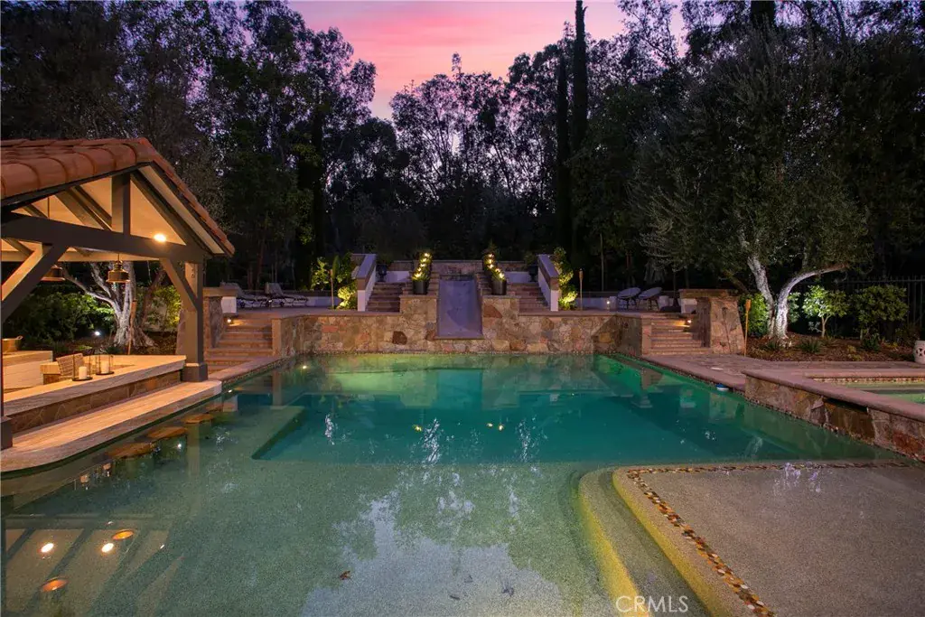 Are you envisioning a breathtaking home that exudes timeless elegance and refined style in the heart of Tustin? Discover your own private retreat in the highly coveted Cameo Woods Community. This exceptional estate, situated at the end of a peaceful cul-de-sac, occupies one of the largest premium lots in the neighborhood, ensuring an ideal combination of space and privacy. This stunning residence features four generously sized bedrooms and four bathrooms, along with multiple living areas and bright bonus rooms that flood with natural light. The renovated kitchen is a culinary enthusiast’s dream, equipped with high-end appliances and effortlessly flowing into the spacious great room, perfect for hosting gatherings. The grand living room, accompanied by an impressive bar, opens up to a spectacular backyard that is truly a haven for outdoor living. In this exquisite space, you’ll find an outdoor kitchen, a large pool with a swim-up bar and slide, a soothing spa, a putting green, a bocce ball court, and a charming fireplace, all complemented by a convenient pool bathroom. Escape to the tranquil master suite, a luxurious retreat that rivals the most serene spas, featuring a spacious layout, ample closet space, and an additional bonus room. The property also boasts a two-car attached garage, a separate one-car detached garage, and a large garage capable of storing a boat, offering generous storage solutions. Every detail has been meticulously considered in this remarkable estate. With these outstanding features and more, why delay? Step into the luxurious lifestyle that awaits you in this extraordinary home!