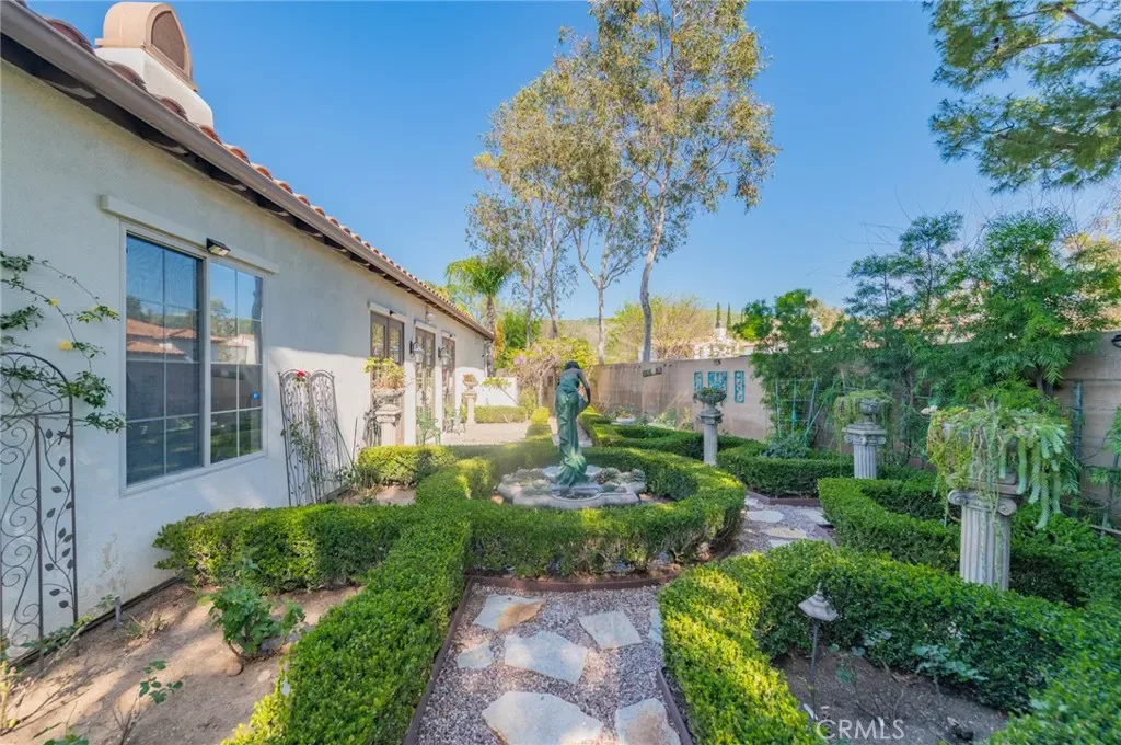 The luxurious primary suite offers a peaceful retreat with a sitting area, fireplace, and direct access to the backyard. The spa-inspired primary bathroom features dual vanities, a soaking tub, and an expansive walk-in closet with built-in organizers.