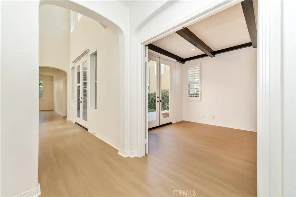 Former model home with 5 bedrooms, 4 full baths, and versatile living spaces. A first-floor bedroom with full bath provides main-level convenience, along with a private office and a separate casita/studio with its own entrance. The bright, open kitchen flows seamlessly into the living room and features an oversized island, ideal for entertaining. Soaring ceilings and soft-color hardwood floors create an elegant, connected feel throughout the home. Step outside to a beautifully landscaped backyard designed for outdoor dining, lounging, and easy everyday enjoyment. The upper level features a luxurious primary suite with a spa-inspired bath and custom walk-in closet. Three additional spacious bedrooms each offer private bath access, including a convenient Jack-and-Jill configuration. A three-car garage with epoxy flooring provides ample storage and parking. Community amenities include a pool, sport court, and park. Located within the sought-after “Irvine School District” and minutes from The District, shopping, dining, and major freeways. Ready to move in.