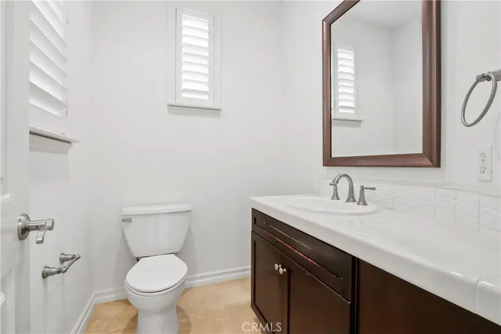 The convenient upstairs laundry room includes a sink and cabinets, along with a versatile workstation area on the second floor. The primary living areas are complemented by a low-maintenance backyard ideal for relaxing or hosting guests.