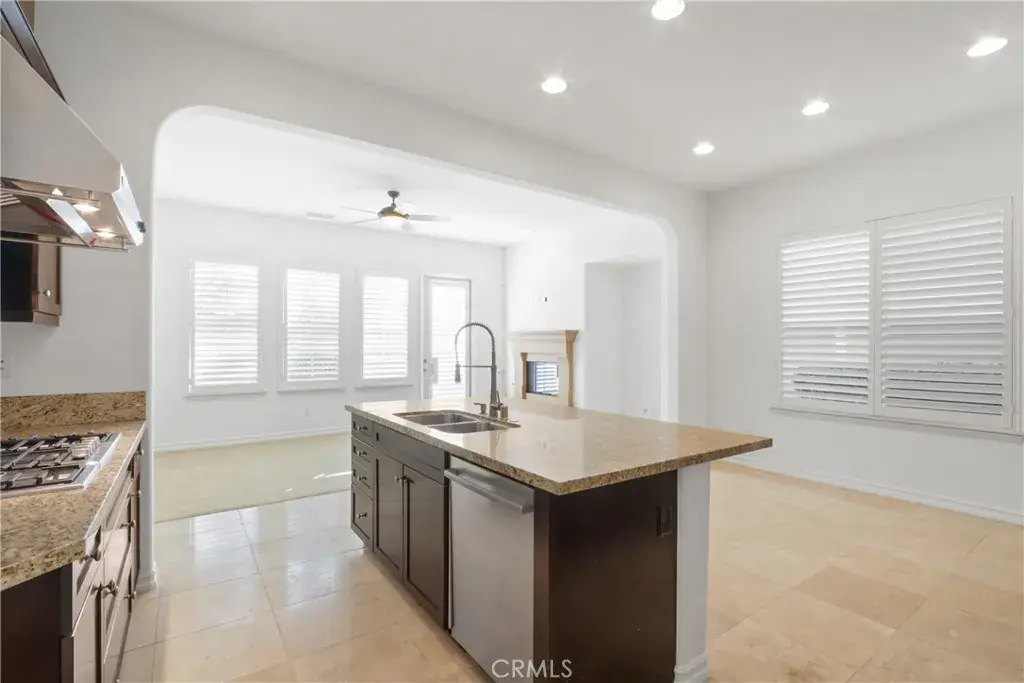 Enjoy a grand spiral staircase and elegant travertine stone floors with a stunning inlay medallion in the entry foyer. The large gourmet kitchen boasts granite countertops, stainless steel appliances, and opens seamlessly to a spacious family room with a cozy gas-burning fireplace—perfect for entertaining.