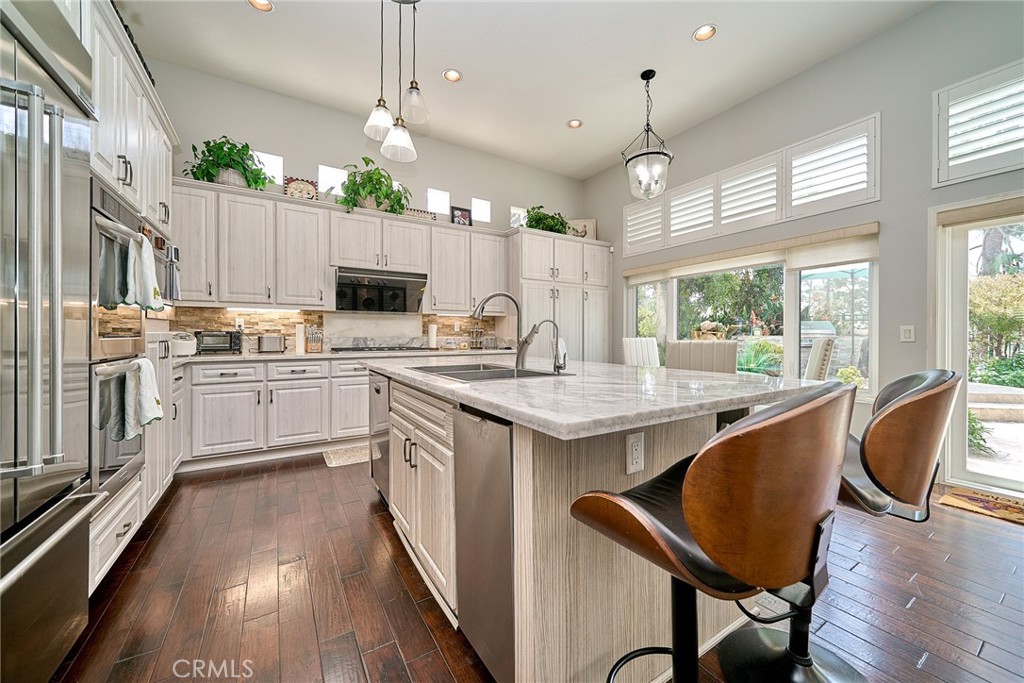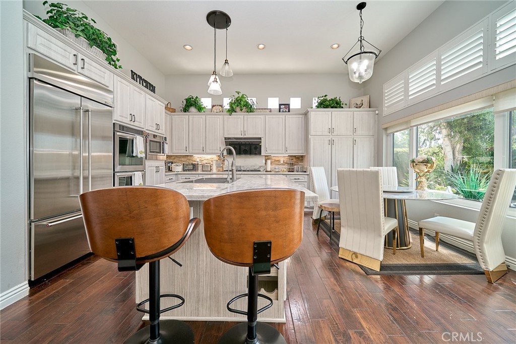Located in the prestigious gated Montecito enclave of Tustin Ranch, 2620 Cypress Point is a beautifully furnished golf course home offering nearly 2,900 sqft of living space on a premium 7,192 sqft lot. This highly sought-after floor plan features 4 bedrooms, including a desirable first-floor master suite, along with formal living and dining rooms and a separate family room. The chef-inspired kitchen boasts granite countertops, designer cabinetry, and KitchenAid stainless steel appliances with a double oven and built-in refrigerator. Upgrades throughout include hardwood flooring, recessed lighting, and California shutters. Bright and inviting, the home offers seamless indoor-outdoor living with peaceful greenbelt views and a stunning backyard glass sunroom, perfect for relaxing or entertaining. Fully furnished and equipped with refrigerator, washer, dryer, oven, and microwave, this home combines comfort, style, and convenience.