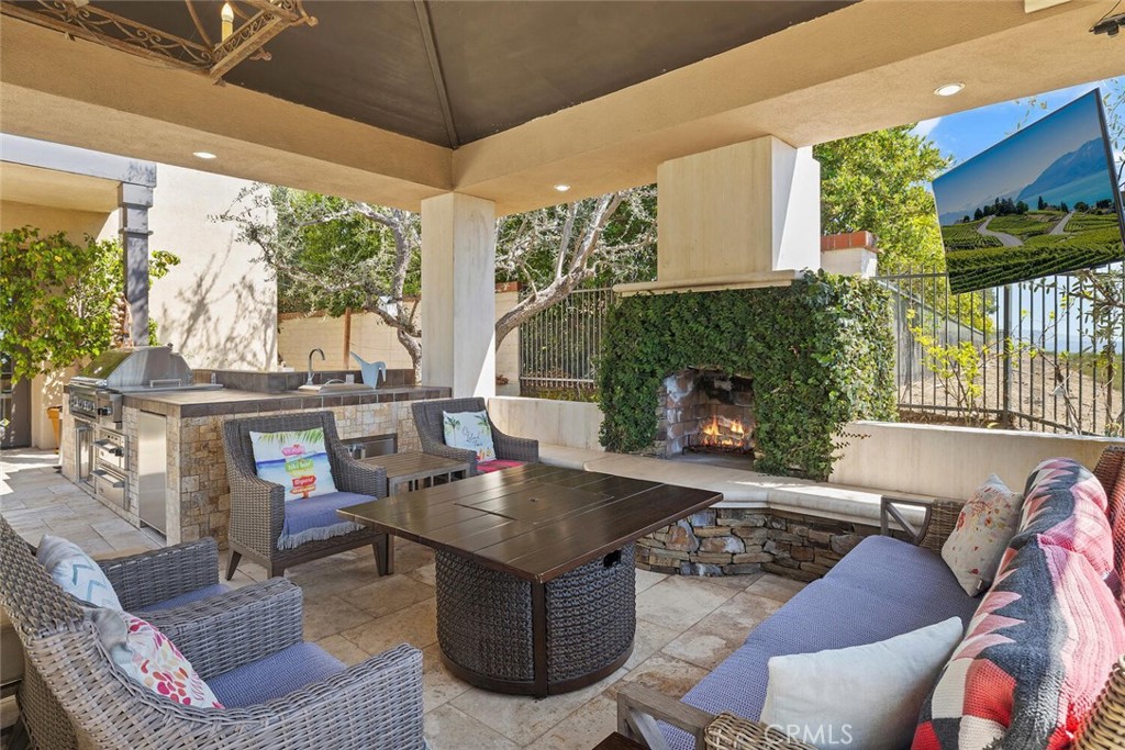 Welcome to 11755 Collar Ave. This luxurious oasis is nestled in one of the most coveted locations within the prestigious 24-hour guard-gated community of Tustin Ranch Estates. This stunning 5,900+ sq. ft. residence offers breathtaking views, mesmerizing sunsets, and picturesque vistas of Catalina Island, all from a peaceful, single-loaded cul-de-sac street. Situated on a sprawling 16,000 sq. ft. lot, the home boasts a seamless blend of elegance and privacy. With its spacious layout, upscale finishes, dual staircase, and panoramic surroundings, this estate invites you to experience an unparalleled lifestyle of comfort and sophistication. This former builder’s model home was thoughtfully designed with premium upgrades, offering a luxurious yet comfortable living space. Every detail has been meticulously crafted to elevate the home’s elegance, from high-end finishes to custom features, providing an exceptional blend of style and functionality. Whether enjoying the expansive indoor areas or the breathtaking outdoor views, this home delivers an unparalleled living experience. The kitchen is a chef’s dream, featuring custom-made cabinetry and ample storage. Equipped with a double oven, built-in refrigerator, and a 6-burner cooktop, this space is designed for both cooking and entertaining with ease. On the first floor, you’ll find a primary en-suite, a formal study with a fireplace, a bright family room, a breakfast nook, and a formal living room with an astonishing wood-carved fireplace and cathedral ceilings. A formal dining room and a bar enhance the home’s entertainment capabilities. The master suite on the second floor boasts its own viewing balcony, offering stunning ocean and city views. 3 additional en-suite bedrooms & a large playroom cater to the needs of the whole family. The mature front & rear gardens offer a year-round spring-like atmosphere. Additional amenities include a covered patio with stone fireplace, overhead heaters, a ceramic-tiled swimming pool, hot spa, and a fully equipped BBQ area offering a massive grill. The long driveway provides parking for multiple cars. The gold-ribbon award-winning schools, world-class dining and shopping, John Wayne Airport, and freeways are all in close proximity.