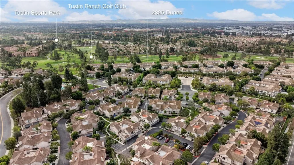 Experience elevated living in upper Tustin Ranch at 2325 Dunes, a beautifully appointed residence ideally situated in the sought-after gated community of Ventana. This townhome-style property welcomes you into the main living areas on the ground floor. Offering 3 bedrooms, 3 bathrooms, and approximately 1,718 square feet of thoughtfully designed open-concept space. With no neighbors above or below, enjoy the privacy of townhome-style living, complemented by a secluded patio featuring low-maintenance landscaping and a trellis cover—ideal for relaxing or entertaining outdoors. Inside, experience a seamless blend between living and dining areas highlighted by vaulted ceilings and an abundance of natural light. The dining area opens directly to the patio, embracing the indoor-outdoor lifestyle Orange County is known for. The main level also includes a convenient bedroom, which is currently staged as an office, offering versatility and added convenience. Additional amenities include a dedicated laundry room, downstairs bathroom, and direct access to a side-by-side two-car garage. The kitchen is both bright and inviting featuring bar seating and an intimate breakfast area situated near a cozy fireplace with access to the private courtyard. Upstairs, the expansive primary suite offers vaulted ceilings, dual closets, and an en-suite bathroom with dual vanities, a soaking tub, and a separate shower. The additional upstairs bedroom functions as a junior suite with its own private bathroom and closet. Located in the desirable upper Tustin Ranch area, Ventana residents benefit from close proximity to Tustin Ranch Golf Club, The Market Place for shopping and dining, and highly rated schools. The community also provides exclusive access to Greenway Park, which includes a pool, spa, playground, and tennis courts—delivering resort-style amenities just steps from home.