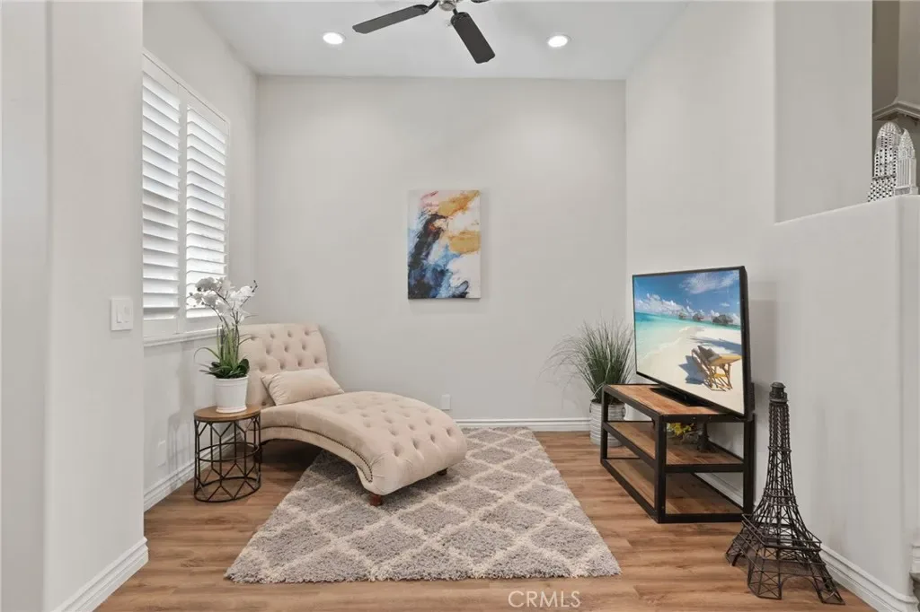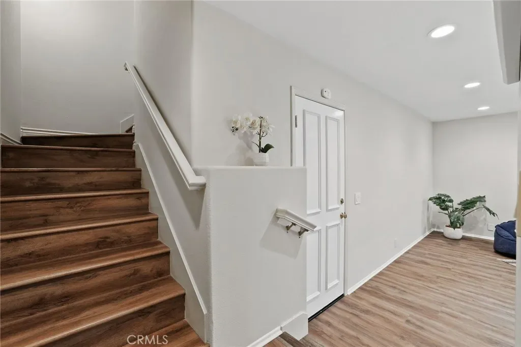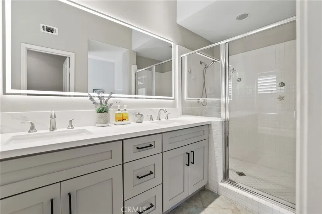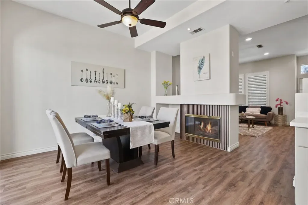 Beautifully remodeled condo within the Venturanza Del Verde community in the highly sought-after Tustin Ranch area. Contemporary and move-in ready! Living room features high ceiling with recessed lighting, double-sided gas fireplace, and sleek plantation shutters. Kitchen features stainless steel appliances, new shaker cabinets, quartz counter tops, and tiled backsplash. Upstairs includes a spacious primary suite with dual closets, two more bedrooms, and a full-sized hallway bathroom. The primary bathroom features a modern LED mirror, double-sink vanity, walk-in shower, soaking tub, and private water closet. The powder room is convenient and guest friendly. The bonus room may be used as a home office, playroom, or exercise room, etc. Additional improvements include new vinyl plank flooring, interior paint, lighting fixtures, and so much more! HOA fee covers water, trash, property insurance, exterior maintenance, and resort-style pool and spa amenities. Conveniently located near the Tustin Market Place, scenic golf course, parks, and top-rated award-winning schools.