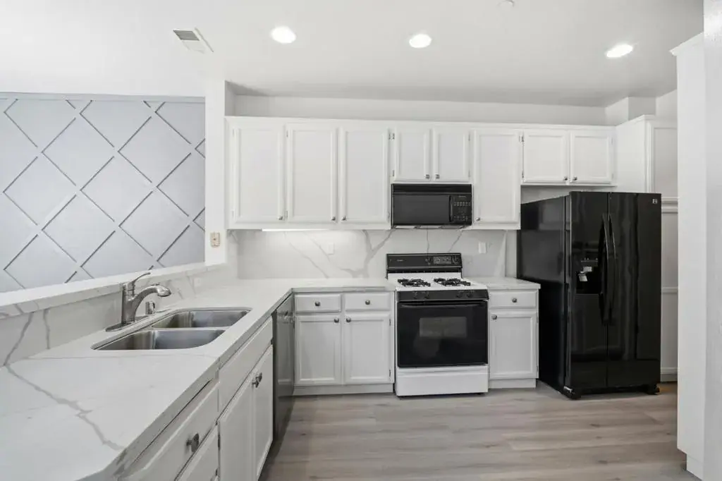 Welcome to this beautiful 3-bedroom, 3-bath end-unit townhome offering 1,554 square feet of thoughtfully designed living space. The highly desirable floor plan features a full bedroom and bath on the main levelideal for guests, multigenerational living, or a private home office. Upstairs, youll find two spacious en-suite bedrooms, providing comfort and privacy for all. Abundant natural light fills the home, enhancing the inviting atmosphere throughout. The updated main level showcases new flooring, a stylish kitchen with marble countertops and matching backsplash, and a cozy high ceiling living room. An indoor washer and dryer are conveniently located in a dedicated utility room. Step outside to a generously sized back patio, perfect for entertaining, relaxing, or enjoying outdoor dining. This end-unit location offers added privacy and light, making this townhome a standout opportunity for comfortable, modern living.