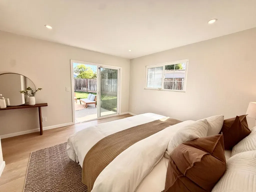 Northeast-facing, fully remodeled home tucked away in a desirable cul-de-sac! This move-in ready 3-bedroom, 2-bath residence features abundant natural sunlight, offers a functional layout with both a living room and family room, an open-concept kitchen and extensive upgrades throughout. Upgrades include updated plumbing and electrical, a fully remodeled kitchen and bathrooms, new interior doors, new flooring, recessed lighting, fresh interior and exterior paint, and a newly finished concrete driveway. The spacious primary suite has direct access to the patio, and a spa-like bathroom with a freestanding soaking tub. Situated on a generous 6,300 sq ft lot in a quiet neighborhood, the backyard features modern landscaping, automated sprinkler system, RV parking and a detached furnished studio with excellent potential as a 4th bedroom, home office, or ADU. This home offers easy access to I-880 and Highway 84 for a seamless commute to Silicon Valley and the Peninsula. Just minutes from Union Landing and nearby plazas with shopping, dining, parks, and everyday essentials.