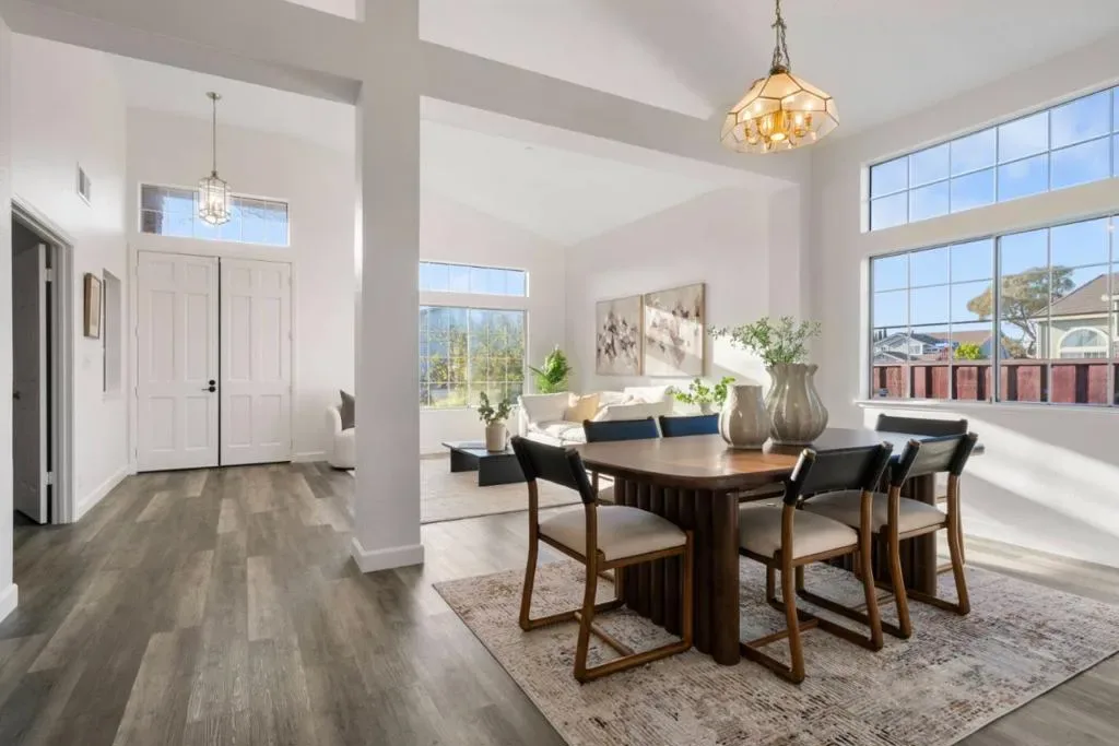 Beautiful single-story home on a generous corner lot in the highly sought after Ponderosa Landing community of Union City, offering bright living spaces, thoughtful updates, and an inviting layout designed for comfortable everyday living and easy entertaining. Soaring ceilings and large windows fill the home with natural light, while spacious living & family rooms create warm gathering spaces for relaxing or hosting friends and family. Updated open kitchen features recessed lighting, SS appliances, an island that flows seamlessly into the family room. Primary suite offers vaulted ceilings, ample closet space, and an ensuite bath with dual vanities, soaking tub, and separate shower. 3 additional bedrooms provide flexibility for family, guests, or a home office.Central heating & A/C, dual-pane windows, and an attached 2-car garage with extra storage. Walking distance to scenic Alameda Creek Trail, Community Parks, Coyote Regional Park; Mins to Shopping Complex, Movie Theatre, FB HQ Google/Visa Shuttle Stop, Local bus lines, BART Station; EZ Access to 880, 84 (Dumbarton Bridge), 92 (San Mateo Bridge). Move-in ready and ideally located, a true must-see.