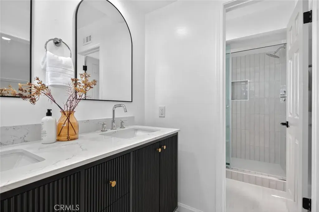 Four spacious bedrooms are thoughtfully placed off the main living areas for added privacy. The primary suite includes a dual-sink vanity and a walk-in shower. Practical conveniences include an interior laundry room.