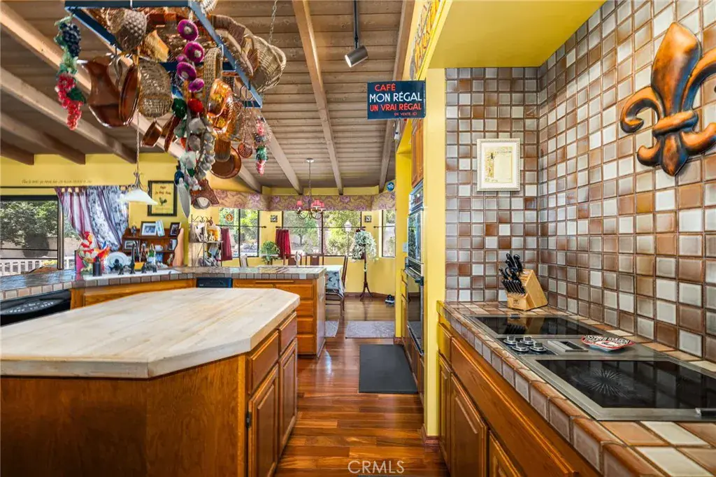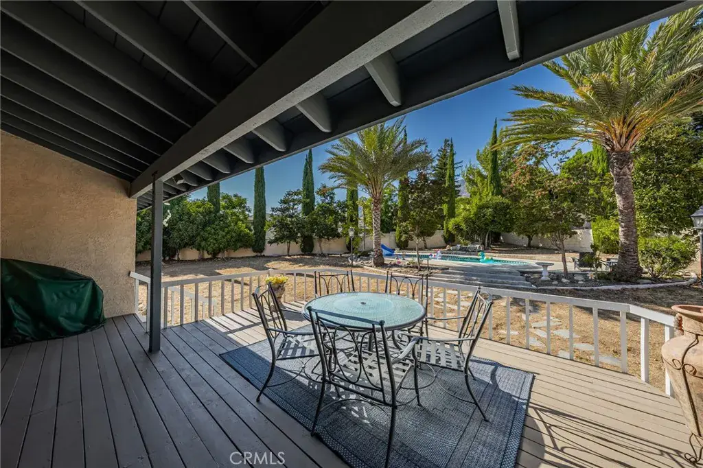 The backyard is your private oasis, accessible through sliding glass doors in the family room. A covered view deck provides a perfect vantage point to soak in the stunning mountain views. The expansive backyard also includes a pool and spa, with ample land available for building an ADU or realizing your own dreamy outdoor space. An abundance of fruit trees will amaze you.