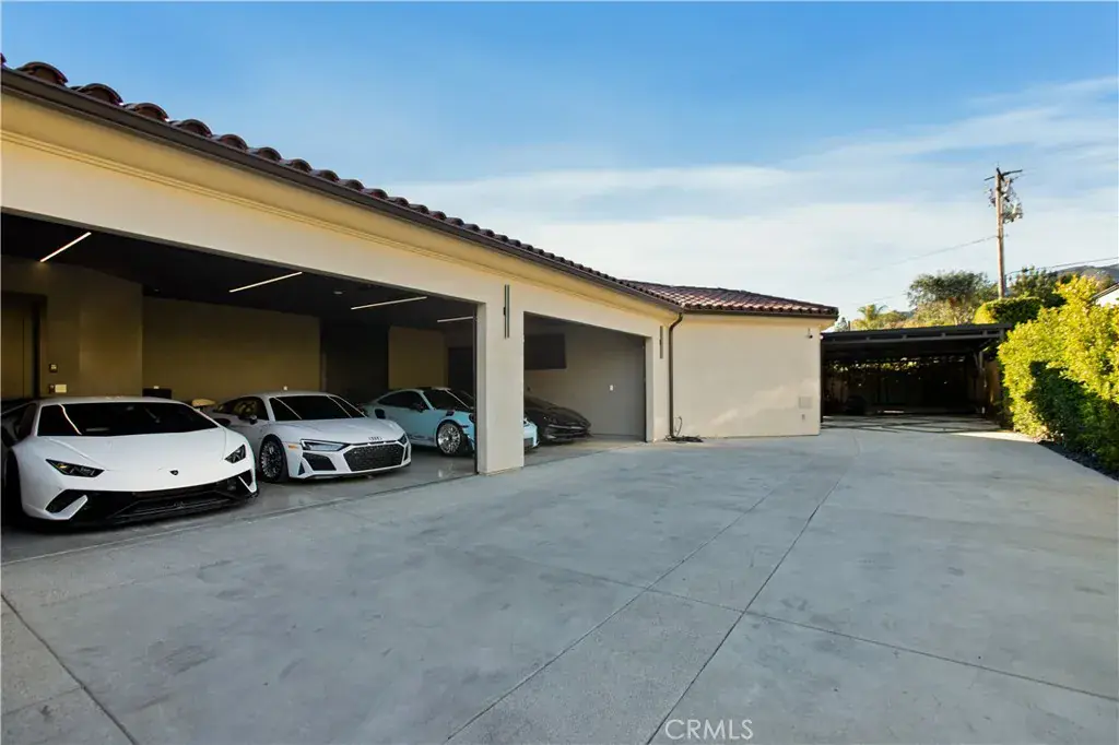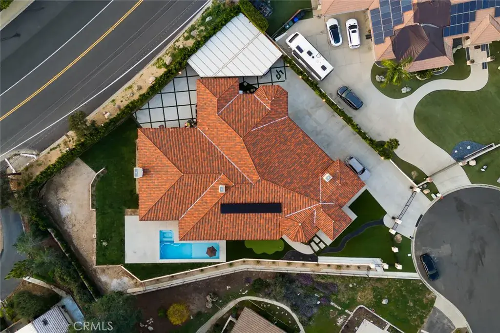 The property also includes whole-house LED lighting, an integrated audio system, security cameras, solar panels, electric vehicle charging, and a gated drive with RV parking. The grounds provide ample space for recreation, entertaining, or pets, all within a secure and private setting.