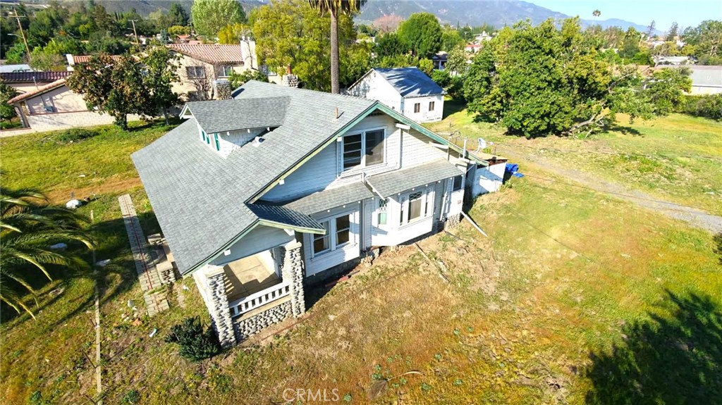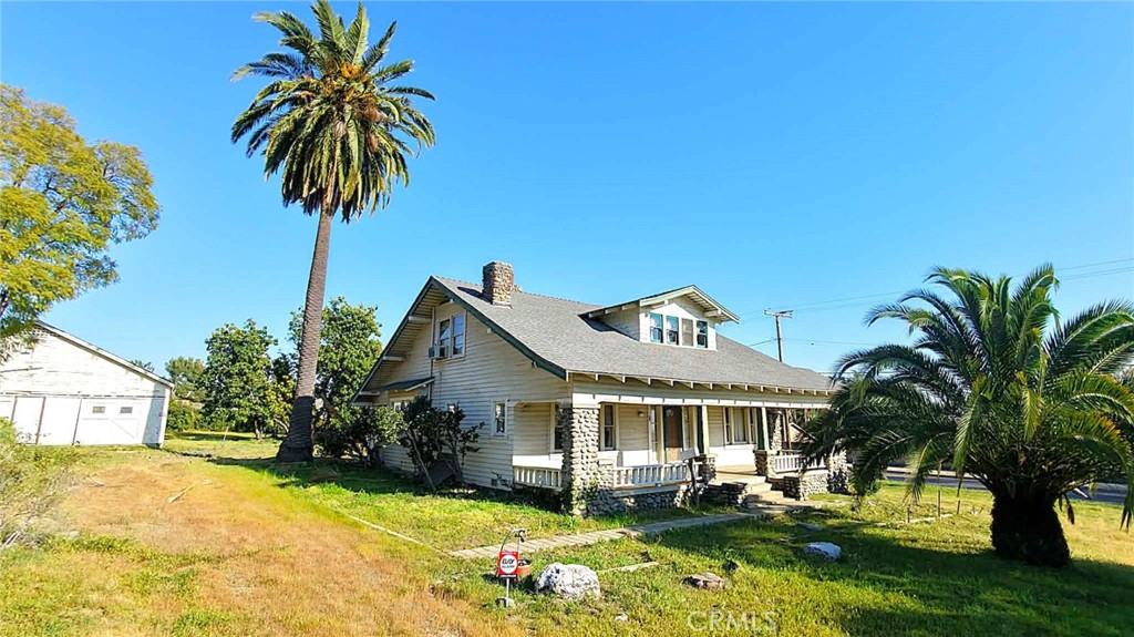 Single two story Craftsman Bungalow home constructed in 1912 on an over 1 acre of fully flat all usable corner lot land with plenty of room for ADU, or sub-divide for development. Upland house. Located in highly desired part of San Antonio Heights Community with mountain view and other expensive homes. The home has a covered porch with large columns and natural stone and it is classified as an historic home with historic benefits for homeowner. The main level of the home offers a spacious living room with stone fireplace and built-in bookcase, family room, and good size kitchen with individual laundry room. Large bedroom with window seat and bath, sunroom, study or 3rd bedroom. Upstairs has approximately 800 square feet that can be used an oversized bedroom with a large bathroom and many closet spaces. The front yard, back yard , side yard are surrounded with many mature fruit trees with fruits from Oranges, Avocado, Grapefruit, white Sapote, Persimmon, Loquat trees and 2 driveways. Also there is a detached garage big enough as a workshop or park the cars or convert it to a ADU. Has many potential to build and make this a dream home or homes. One of the rare find in Upland with this type of big size land.