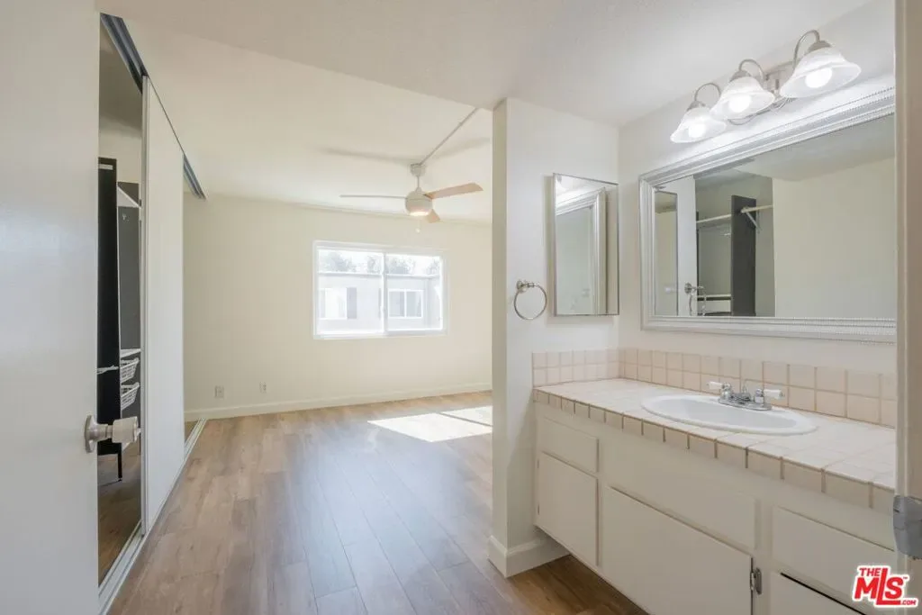 This 2 bed 2 full bath, upper-level condo in Valencia Lakeshore offers a bright and inviting living space with privacy, high ceilings, and two balconies situated on opposite sides allowing for fresh breezeway. Whether looking to move into a quiet community which offers many amenities or looking for an investment/income property, this beautifully maintained and recently painted. The open-concept layout flows seamlessly from the spacious living area to a well-appointed kitchen with ample cabinetry, farmhouse sink, and wood and tile countertops, creating a warm and functional cooking space. The bedrooms are spacious and filled with natural light from the updated windows, featuring stylish ceiling fans and custom storage solutions. The primary suite offers ample closet space and an en-suite bathroom, while the additional bedroom is perfect for guests or a home office. Enjoy complete privacy on one balcony surrounded by lush greenery, an ideal spot for morning coffee or an evening barbecue. Residents have access to resort-style amenities, including two pools, tennis and paddle tennis courts, basketball half-courts, a kid’s playground, a picnic area, a dog park, a BBQ area, and a clubhouse. Located adjacent to California Institute of the Arts (CalArts) and Vista Valencia Golf Course, this community also offers easy access to shopping, dining, entertainment, and major freeways.