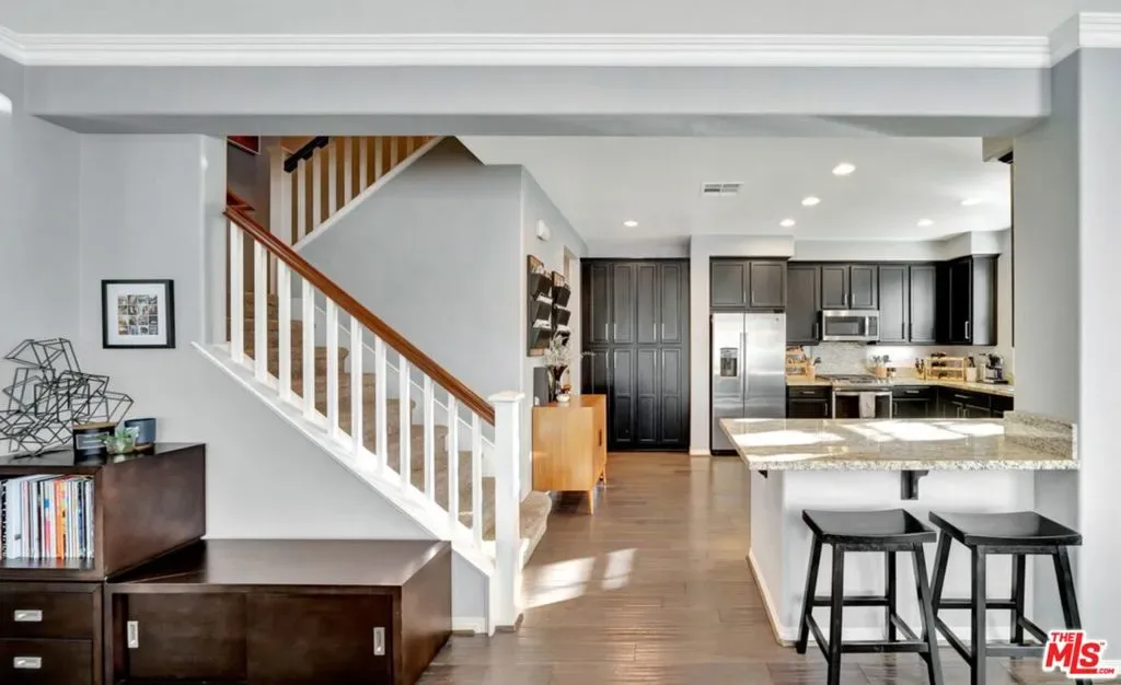 Beautifully maintained 3 bedroom, 3 bath, 2090 square feet townhome located in the highly desirable Valencia West Creek community. Within top-rated school districts. This residence is assigned to West Creek Academy, Rio Norte Junior High School (just steps away), and Valencia High School, making it an exceptional choice for those seeking access to some of the area’s most sought-after schools. This spacious residence offers an ideal open floor plan with abundant natural light, modern finishes, and comfortable living spaces throughout. The kitchen features ample cabinetry and counter space with bar seating, seamlessly connecting to the dining and living areas. Upstairs, the spacious primary suite offers a private retreat with en-suite bath, walk-in closet, while additional loft and bedrooms provide flexibility for family, guests, or a home office. Enjoy private outdoor spaces ideal for relaxing or entertaining. Additional highlights include built-in ceiling speakers and a 2-car attached garage space with EV charger. Refrigerator, washer, and dryer are also included. Situated in a well-kept community with resort-style HOA amenities including pool, spa, park, basketball court, and scenic biking trails. Conveniently located near parks, shopping, dining, and easy access to major freeways. Available for move-in May 7.
