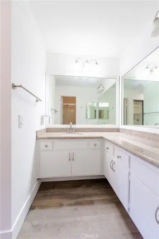 Welcome to this updated townhome located in the gated community of Arbor Park in Valencia. This unit is on the top level of the building. It is a short walk to the pool and spa. Features include wood like laminate flooring and vaulted ceilings. A spiral staircase leads to the upstairs 3rd bedroom that has a closet. The primary suite has an en-suite bathroom and large closet. It also has private access to the balcony. There is also a deck in the front. The second bedroom is adjacent to a full bathroom. The kitchen has been updated and includes laundry hook ups. There is a private garage that accommodates two cars. Location is convenient to shopping, entertainment, and freeway access.