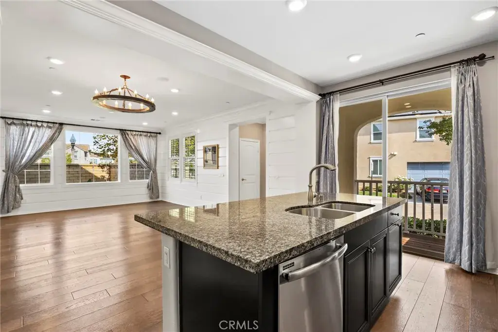 The open-concept floor plan features 4 spacious bedrooms, 3 full baths, and a bright living area filled with natural light. The gourmet kitchen boasts granite countertops, maple cabinetry, stainless steel appliances, and a large island that opens to the dining and family room—perfect for entertaining. A full bedroom and bathroom downstairs offer flexibility for guests, in-laws, or a private home office.