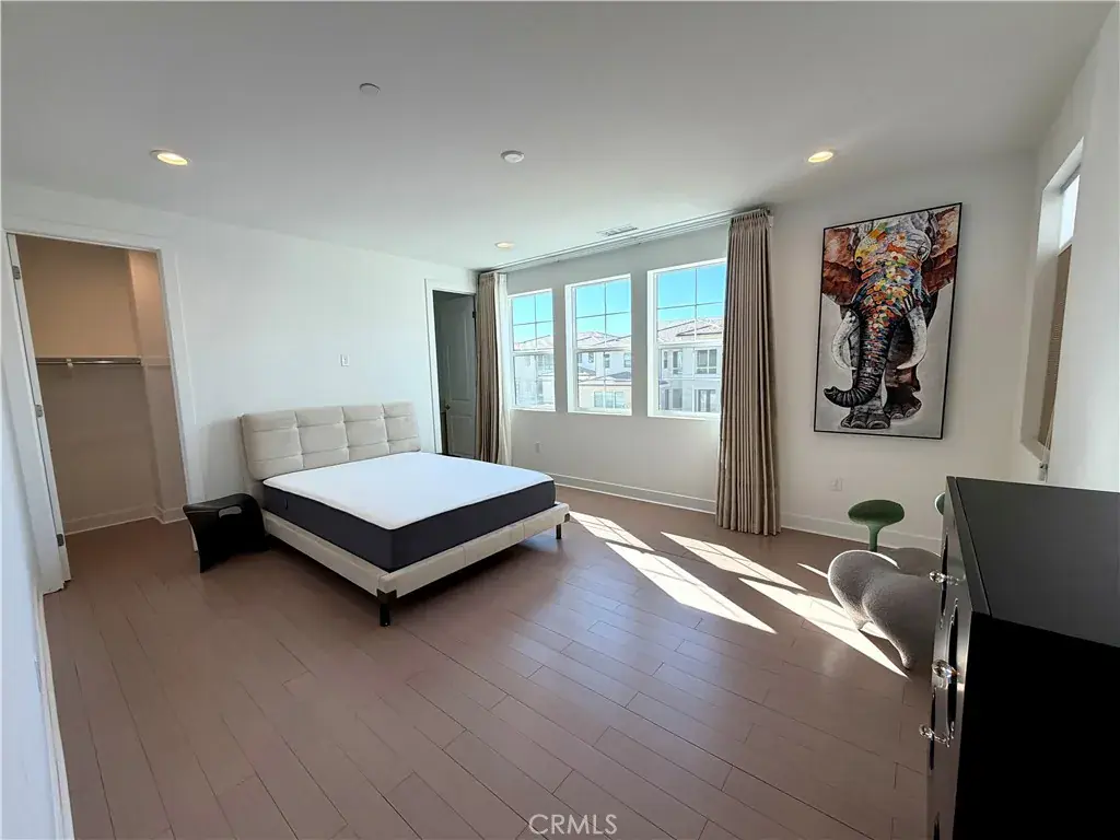 The contemporary interior showcases a dramatic two-story foyer with soaring ceilings, an expansive great room, and an open chef’s kitchen featuring a Wolf range and built-in Sub-Zero refrigerator—ideal for both everyday living and entertaining. A main-level flex room provides versatility for an office or guest suite, while the upstairs loft offers additional living or entertainment space. Each bedroom includes its own ensuite bathroom, ensuring comfort, privacy, and convenience. Designed for modern, energy-efficient living, the home is equipped with solar panels, smart thermostats, a tankless water heater, and three parking spaces.