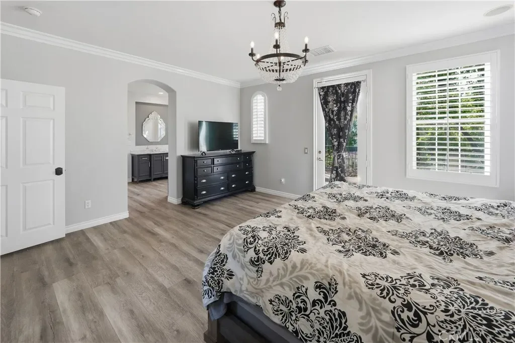 Exquisite Entertainer’s Home located on one of the best Cul-de-Sac streets in the Prestigious Guard Gated Woodlands Community! As you enter this Magnificent home you are in awe with the Architectural Style and Designer’s Touch throughout! This Sophisticated Well-appointed home exemplifies impeccable taste. Luxury Living at its finest! As you enter this Incredible home, you are drawn to Custom Beveled Windows and French Doors leading you to the Courtyard and Entertainer’s Backyard! This Spectacular home Boasts 5 Large Bedrooms (one downstairs), Approx. 3,600 Sq. Ft, Tech Center, Large Primary Suite with Balcony, Large Living Room, Formal Dining Room, Family Room, Loft, Large Upgraded Gourmet Kitchen with High-End Appliances, Quartz Counter Tops & Gorgeous Backsplash & Breakfast Nook overlooking the Breathtaking Backyard. Perfect for any Chef! Large Family Room with Upgraded Stone Hearth Romantic Fireplace. Formal Dining Area with French Doors to the Lush Private Courtyard with Serene Water Feature. As you meander upstairs you are drawn to the Large Loft, Large Primary Suite with Large Balcony and Stunning Mountain Views. Large Luxurious Upgraded Primary Bathroom with Dual Sinks with Walk-in Shower & Separate Tub. Feels like you are in Bellagio. Two Walk-in Closets with Built-ins. Four Large Bedrooms (one w/En-suite & one with deck). Large Laundry Room with Sink and plenty of storage. Features include French Doors, Crown Molding, Custom Beveled Windows, Ceiling Fans, Recessed Lighting, Plantation Shutters, Upgraded Fireplace, Laundry Room & Professionally Painted. Lush Entertainer’s Park-like Backyard with Covered Patio, Custom BBQ with Enchanting Mountain Views. Professionally Hardscaped & Landscaped. Fabulous Large Private Backyard and Courtyard for Entertaining! 2 Car Garage. Woodlands Amenities include, Guard Gated Entry, Recreation Center, Jr. Olympic Pool, Spa, Outdoor Fireplace, BBQs, Tennis Courts, Basketball Courts, Tot Lot and Walking Trails. Close to award winning schools, shopping and easy freeway access. No Mello Roos. Some photos have been virtually staged.