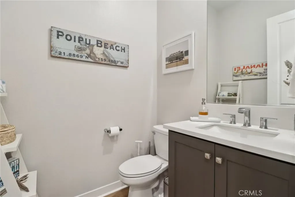 The chef-inspired kitchen showcases quartz countertops, stainless steel appliances, a large center island, and a spacious walk-in pantry, seamlessly flowing into the main living and dining areas. A convenient downstairs powder room adds function for guests.
