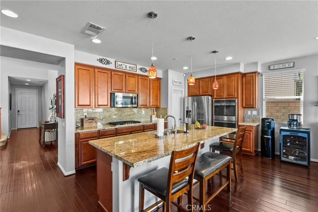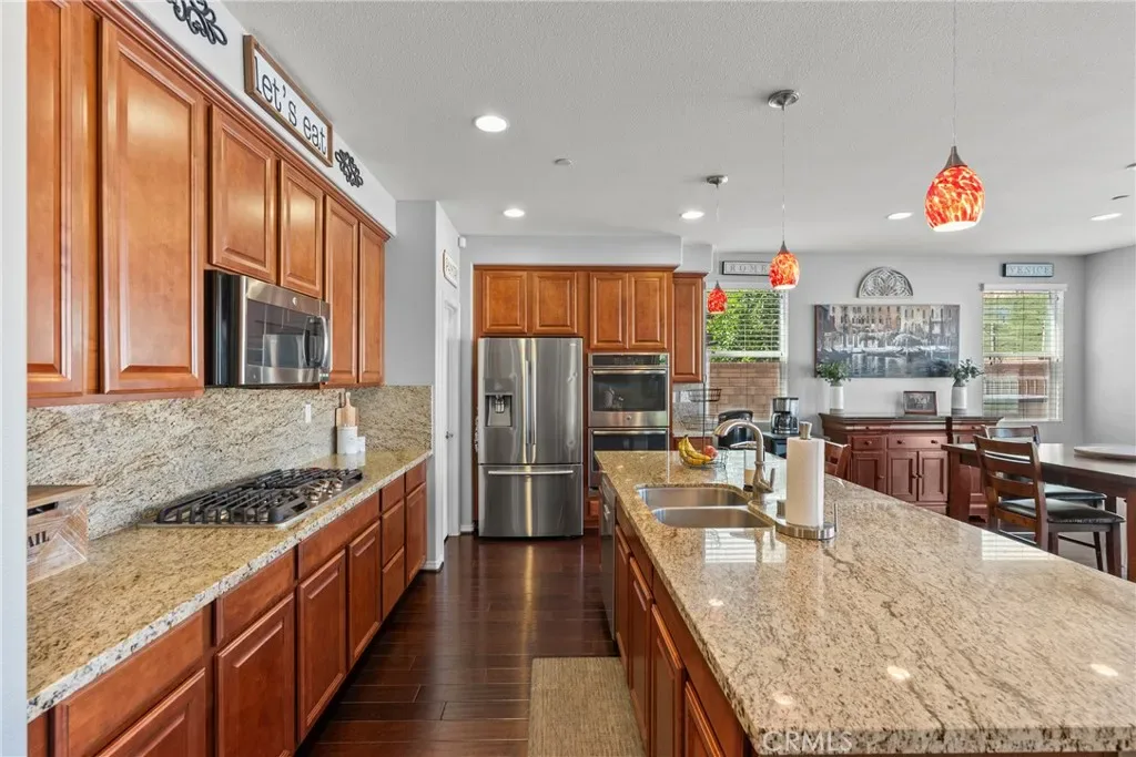 Welcome to 24557 Rosette Lane in Valencia, a beautifully appointed two-story home tucked away at the end of a cul-de-sac inside one of the Santa Clarita Valley’s sought-after gated communities in West Hills. With 4 bedrooms, 3.5 bathrooms, an office area, loft, and 3,159 sq ft of living space, this home offers a versatile layout designed for both everyday comfort and effortless entertaining. One of the home’s most standout features is the private downstairs mother-in-law suite, complete with its own entrance, laundry, living room, bathroom, bedroom with walk-in closet, and kitchenette—offering exceptional privacy and flexibility. The main living spaces are equally inviting, with attractive landscaping and an inviting entry leading into an open-concept floor plan. The spacious dining area and family room with fireplace flow seamlessly into a beautifully designed kitchen featuring an oversized island, abundant storage, a walk-in pantry, and stainless double ovens. Upstairs, you’ll find a generous loft, dedicated office area, large laundry room, spacious secondary bedrooms, and a well-appointed primary suite with a soaking tub, walk-in shower, and walk-in closet.