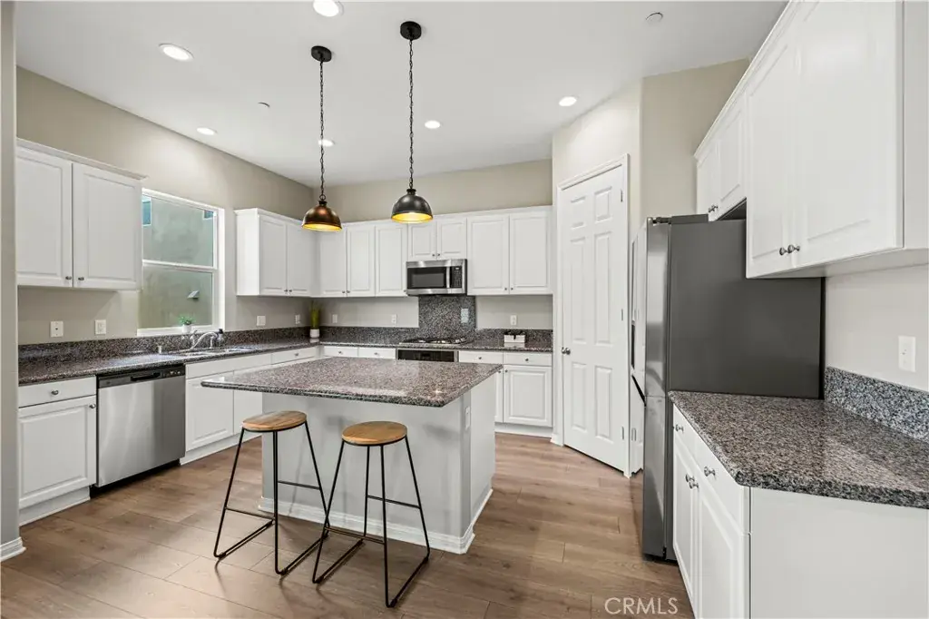 Welcome to Five Point, one of the area’s most coveted master-planned communities—where resort-style living, vibrant energy, and modern design come together seamlessly. This beautifully crafted newer construction home delivers the lifestyle today’s buyers crave, wrapped in style, comfort, and convenience. From the moment you step inside, you’re greeted by a light-filled tri-level layout featuring upgraded luxury vinyl plank flooring and a warm, contemporary feel throughout. The entry level offers a flexible space perfect for a home office, creative studio, or cozy seating area, along with direct access to your private 2-car garage. The heart of the home is made for living and entertaining. The open-concept main level flows effortlessly from the spacious living room to a private deck—ideal for hosting friends or unwinding after a long day. The chef-inspired kitchen is a true showstopper, complete with stainless steel appliances, granite countertops, a large center island, and generous pantry storage—turning every meal into an experience. A full bedroom and bathroom on this level offer ideal flexibility for guests or multigenerational living, plus a conveniently located laundry room. Upstairs, retreat to your luxurious primary suite, a private sanctuary featuring a walk-in closet and spa-like en-suite bath with dual vanities and a sleek glass-enclosed shower. The secondary bedroom also boasts its own walk-in closet and private full bath. Step out onto your second private deck and take in peaceful views—perfect for morning coffee or relaxing under the stars. Designed with sustainability and savings in mind, this home is equipped with solar panels, EV-ready charging, and energy-efficient appliances, offering both eco-friendly living and lower utility costs. Living at Five Point means enjoying an unmatched lifestyle: a resort-style pool and spa, clubhouse, community gardens, play areas, and year-round community events that bring neighbors together. All of this is just minutes from the 5 Freeway, premier shopping and dining, and top-rated schools—placing everything you need right at your fingertips. Stylish, energy-efficient, and perfectly located, this home isn’t just a place to live—it’s a place to thrive. Homes like this don’t last. Come experience it for yourself and make it yours today! Welcome Home!