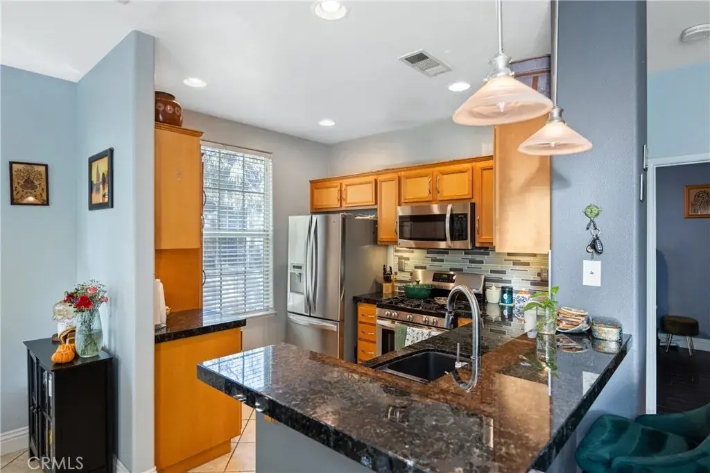 Experience VALENCIA BRIDGEPORT LIVING in this Charming single story Spinnaker Pointe condo just a short distance from the Paseo bridge to the stunning lake and sparkling community pool and clubhouse! Located in one of Valencia’s most desirable communities with reasonable HOA and no Mello Roos! This Move-in ready and beautifully styled home features an inviting open-concept layout filled with natural light and warmth! The spacious living and dining areas open seamlessly to the lovely kitchen complete with a gas range, built-in microwave, dishwasher, ample cabinetry, generous counter space, and a stylish backsplash! Enjoy sunrise and sunsets on the private patio overlooking lush tree lined neighborhood! This home features intelligent lighting control in the foyer, living room, dining room, balcony, and both bedrooms—perfect for ambience and convenience! The private primary suite located on the opposite wing from the second bed and bath, includes a walk-in closet and dual-sink vanity with tub shower combo! The second bedroom suite is conveniently located adjacent to the full guest bath! Additional highlights include in-unit laundry with a stackable washer/dryer and a detached one-car garage with plenty of guest parking nearby! Enjoy the resort-style amenities that make Bridgeport so special: sparkling community pool, spa, BBQs, fire pit, clubhouse, paseos, scenic lake and bridges, plus nearby parks, the Santa Clarita Trail System and top-rated schools! Just minutes to Valencia Town Center, tons of dining options, and streamlined freeway access to the 5, 14 and 126! Experience the best of Valencia living at Spinnaker Pointe—comfort, convenience, and community all in one place! This is a home you will cherish for years to come!
