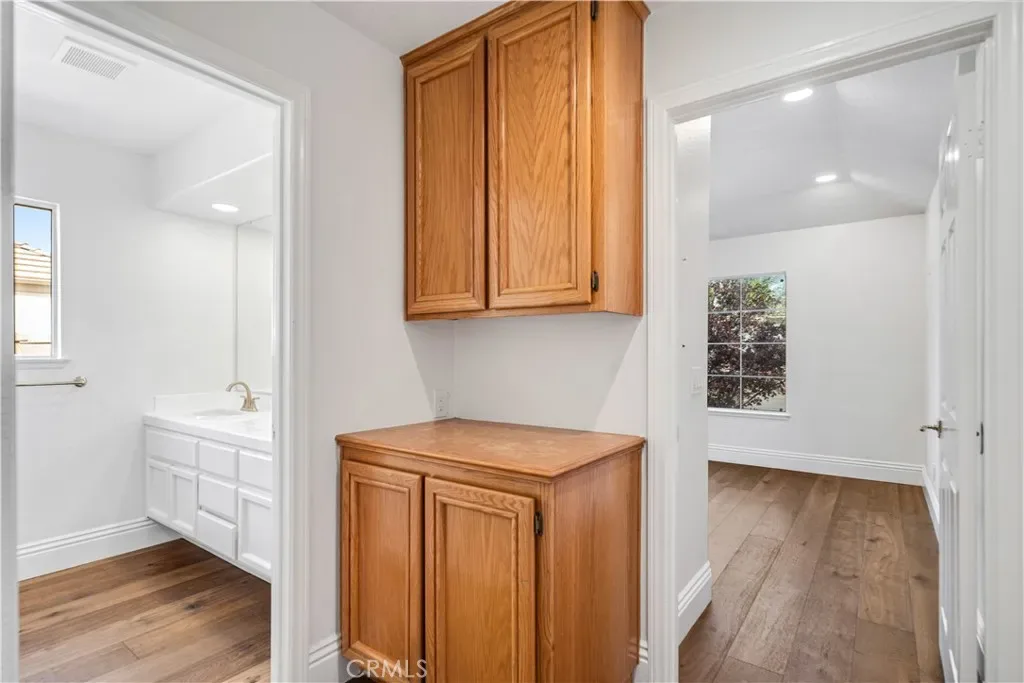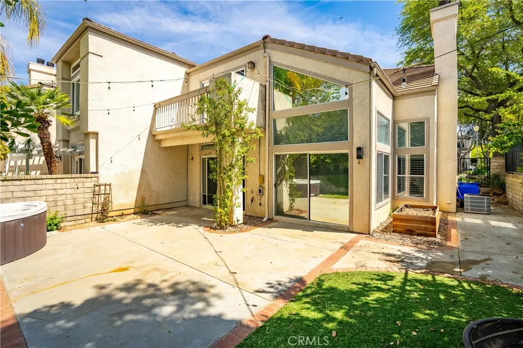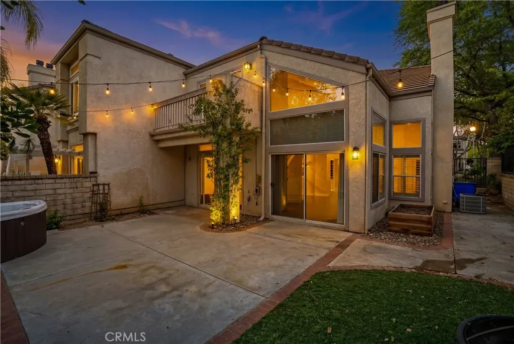 ***LIVE BEAUTIFULLY*** Welcome to an incredible opportunity to own a beautifully upgraded home in the highly desirable, gated Stratford Collection within Valencia Summit—one of the most sought-after communities in the Santa Clarita Valley! This spacious 1,850 sq ft townhome features an open and airy floorplan with soaring vaulted ceilings and an abundance of windows that fill the home with natural light. The inviting living room offers a cozy fireplace and flows seamlessly into a formal dining area with direct access to your private backyard patio—perfect for entertaining. The main level also includes a convenient half bath and an indoor laundry room. The kitchen has been thoughtfully upgraded with KitchenAid appliances, recessed lighting, and stunning hardwood flooring that now extends throughout the entire home, replacing all previous carpet. Plantation shutters, modern ceiling fans in every room, and enhanced recessed lighting throughout both levels add style and functionality. This desirable floorplan now offers 4 bedrooms, including a fully converted loft that has been transformed into an additional bedroom with two added closets. The expansive primary suite boasts high ceilings, a private balcony, and a luxurious ensuite bathroom featuring dual sinks, elegant tile flooring, and a breathtaking skylight. The secondary upstairs bathroom also includes dual sinks and upgraded finishes, while the downstairs bathroom has been updated with a new vanity. Additional upgrades include added shelving in the garage and pantry, a custom-built storage room underneath the stairs, Toto toilets with bidets in all bathrooms, and a recently upgraded A/C unit for enhanced comfort. Step outside to your own private oasis—a generously sized backyard with a soothing above-ground spa, patio space for grilling, and room to relax or entertain. Parking is a breeze with a 2-car attached garage, driveway space, and ample guest parking nearby. Residents of Stratford Collection enjoy resort-style amenities including multiple pools and spas, BBQ areas, a recreation room, basketball and tennis courts, and access to scenic biking, hiking, and walking trails. Conveniently located near shopping, dining, top-rated schools, and with easy freeway access, this home truly has it all. Don’t miss this exceptional opportunity—this one won’t last!