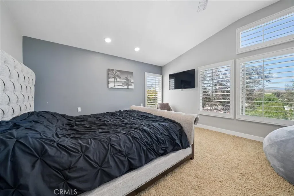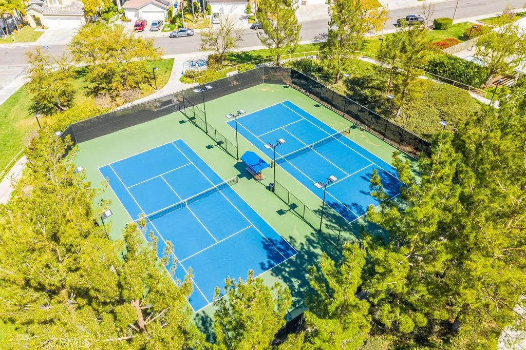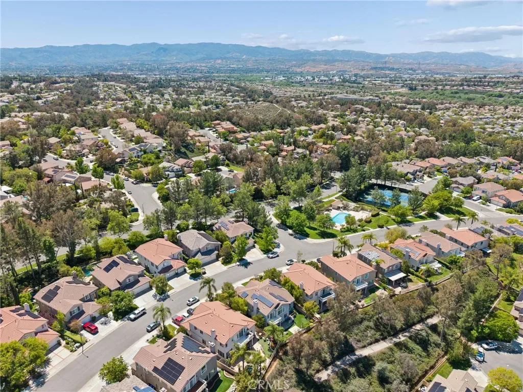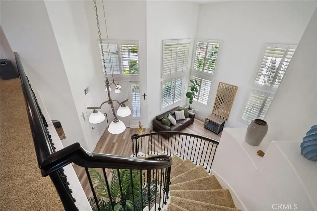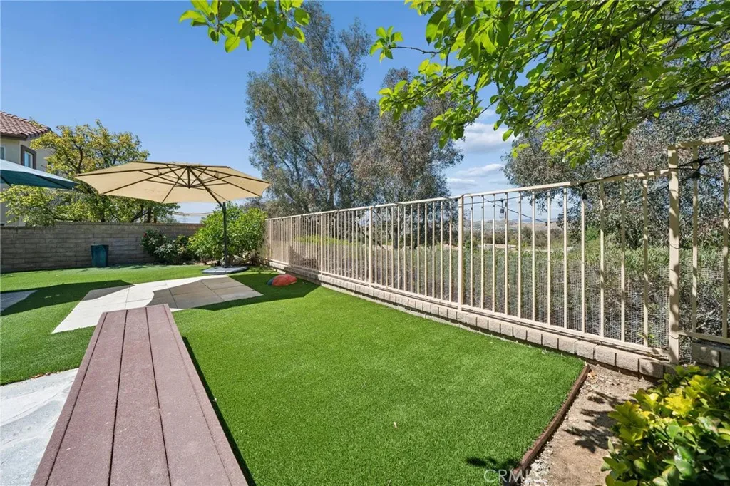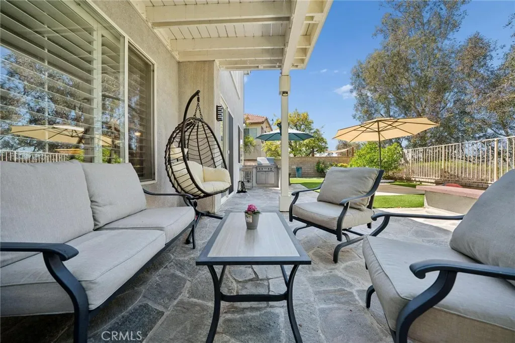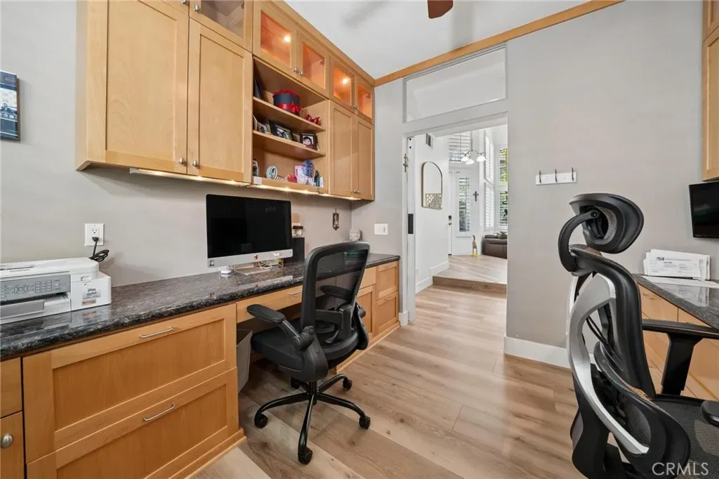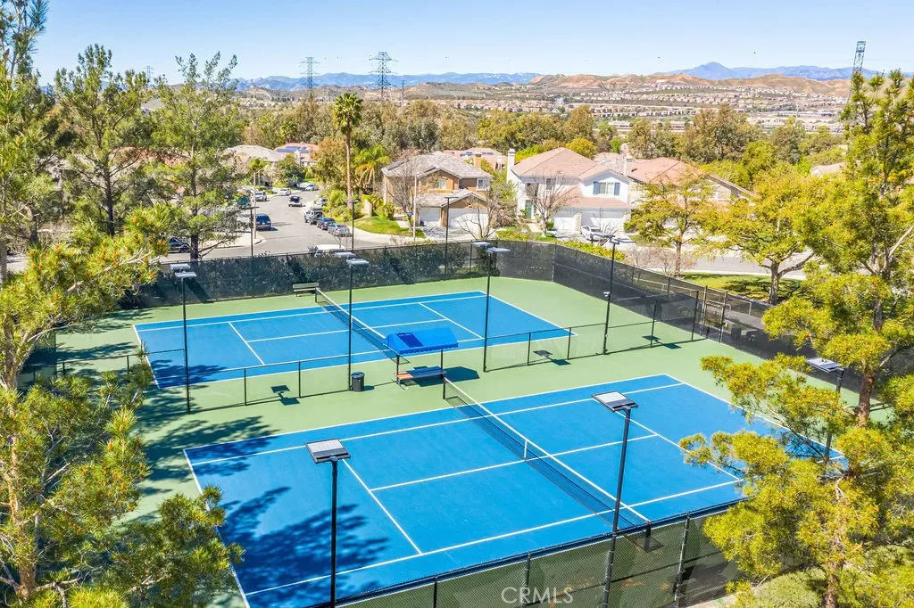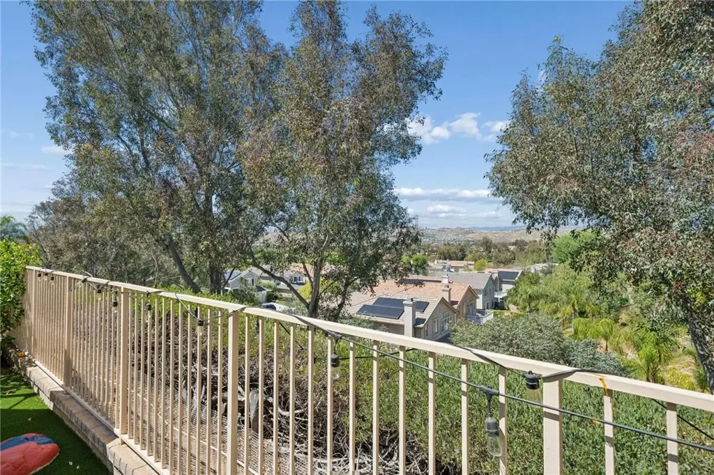 Welcome to one of the most sought-after neighborhoods in Valencia. Ideally situated on a cul-de-sac within the desirable Northpark community, this beautifully upgraded home offers the perfect blend of comfort, style, and functionality, and includes OWNED SOLAR for added efficiency and long-term savings. Newer waterproof laminate flooring flows seamlessly throughout, creating a clean, modern foundation. The upgraded kitchen features custom cabinetry, newer quartz countertops, and a full-height quartz backsplash, delivering a sleek and cohesive design. Plantation shutters add timeless appeal, while a newer wrought iron staircase creates a striking architectural focal point. A custom barn door enhances the downstairs office, offering both style and versatility. The main level also includes a full bathroom with granite countertops, tile flooring, and a walk-in shower, along with a convenient laundry room complete with a utility sink. Upstairs, the spacious primary suite features a private balcony overlooking the backyard with gorgeous views and a relaxing retreat area. The remodeled primary bathroom showcases custom cabinetry, a large walk-in shower, and a soaking tub. The walk-in closet is outfitted with custom built-ins for optimal organization. Two additional bedrooms and a shared bathroom complete the upper level. The backyard is designed for both entertaining and low-maintenance living, featuring a covered patio, turf landscaping, a built-in BBQ, and mature fruit trees, including apple and lemon. A spacious three-car garage completes this exceptional home. NO MELLO ROOS and low HOA which features tennis courts, multiple pools and spas, clubhouse, basketball, outdoor BBQ and more!