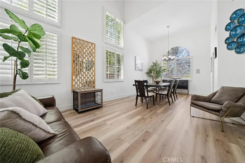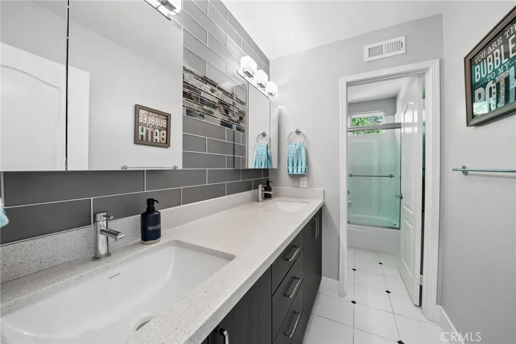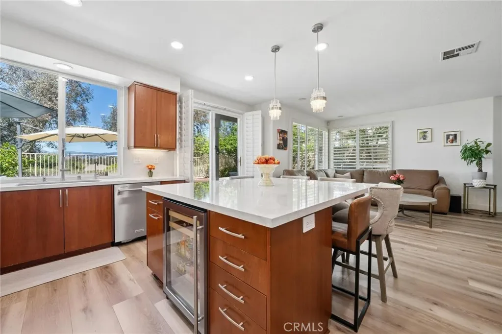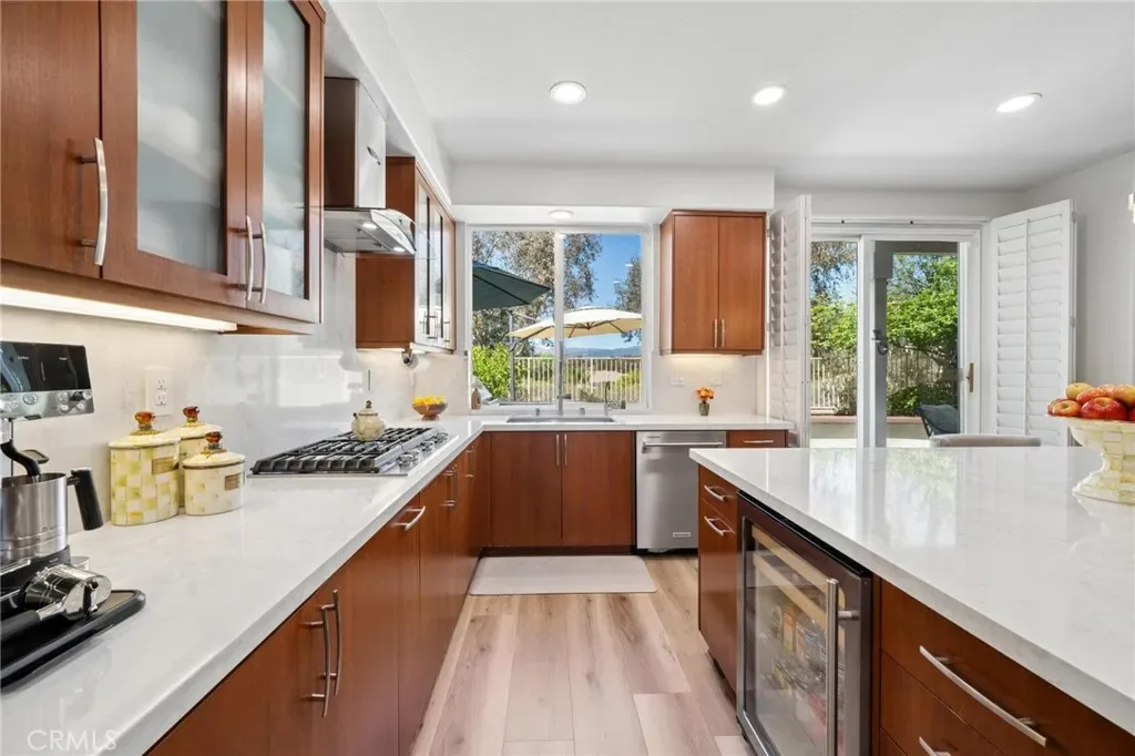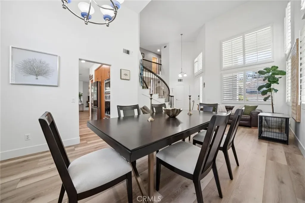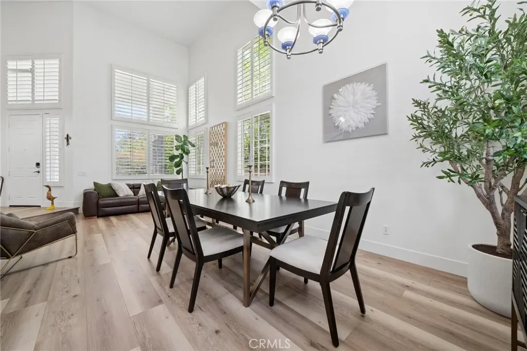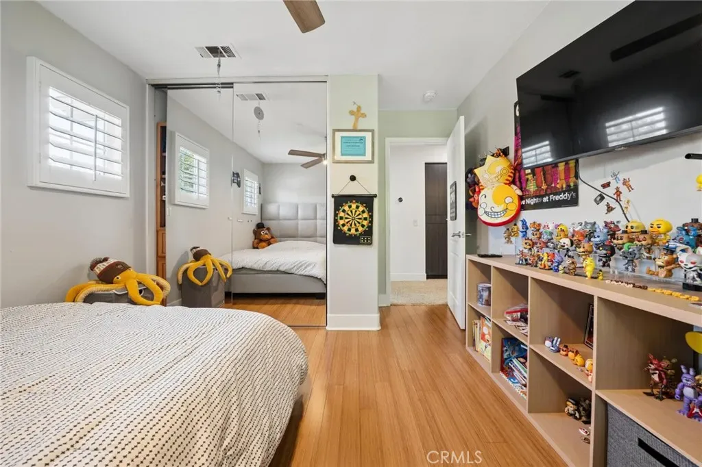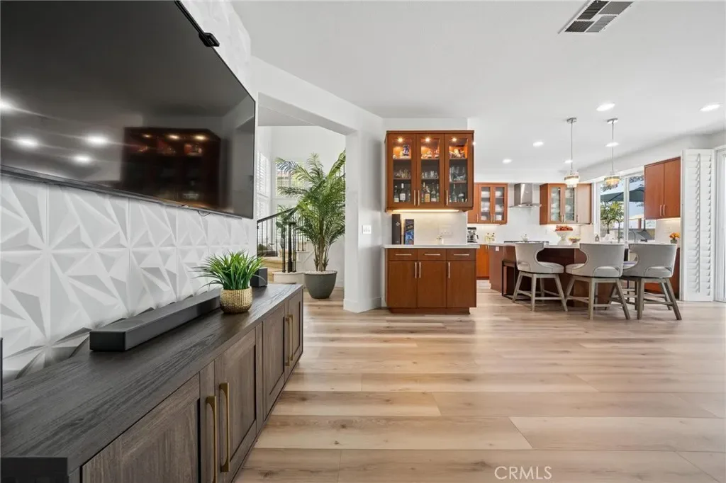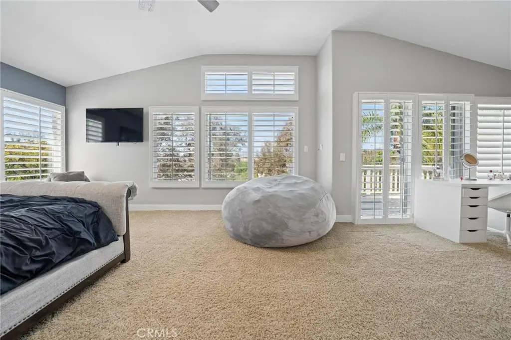 Welcome to one of the most sought-after neighborhoods in Valencia. Ideally situated on a cul-de-sac within the desirable Northpark community, this beautifully upgraded home offers the perfect blend of comfort, style, and functionality, and includes OWNED SOLAR for added efficiency and long-term savings. Newer waterproof laminate flooring flows seamlessly throughout, creating a clean, modern foundation. The upgraded kitchen features custom cabinetry, newer quartz countertops, and a full-height quartz backsplash, delivering a sleek and cohesive design. Plantation shutters add timeless appeal, while a newer wrought iron staircase creates a striking architectural focal point. A custom barn door enhances the downstairs office, offering both style and versatility. The main level also includes a full bathroom with granite countertops, tile flooring, and a walk-in shower, along with a convenient laundry room complete with a utility sink. Upstairs, the spacious primary suite features a private balcony overlooking the backyard with gorgeous views and a relaxing retreat area. The remodeled primary bathroom showcases custom cabinetry, a large walk-in shower, and a soaking tub. The walk-in closet is outfitted with custom built-ins for optimal organization. Two additional bedrooms and a shared bathroom complete the upper level. The backyard is designed for both entertaining and low-maintenance living, featuring a covered patio, turf landscaping, a built-in BBQ, and mature fruit trees, including apple and lemon. A spacious three-car garage completes this exceptional home. NO MELLO ROOS and low HOA which features tennis courts, multiple pools and spas, clubhouse, basketball, outdoor BBQ and more!