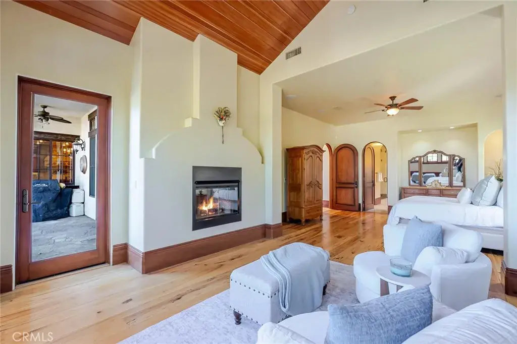 Among the rare custom Westridge Estates perched along the 18th green of The Oaks golf club, a PGA Tour designed golf course, with spectacular views of the entire Santa Clarita Valley! One of the larger lots overlooking the course with an entertainers yard featuring a beautiful pool, spa and plenty of room for play or just watching the amazing view, all with the security of a 24-hour guard gated community. Designed with both function and sophistication in mind, the open floor plan features a grand entrance with breathtakingly high ceilings and a handmade calligraphy staircase. Spacious primary suite on the main level with vaulted ceilings and a retreat with a fireplace. An additional en-suite bedroom down, ideal for guests or multi-generational living. The spacious kitchen has an unusually large island, custom soft close cabinetry, high-end appliances, and a large walk-in pantry with venting and electrical for dining prep. The kitchen opens to the living room providing the perfect space for those looking to host friends, family, & loved ones. Located upstairs are three oversized en-suite bedrooms, each with their own walk-in closets. Enjoy the remarkable view with your morning coffee or evening wine on the covered deck of the third floor. A finished basement serves as the ultimate game or movie room, and an elevator that seamlessly connects all three levels. The interior was thoughtfully selected with high-end finishes throughout including fresh paint, a spacious laundry room, and a dedicated multi-purpose room. Custom ¾ inch thick hickory flooring in the kitchen, dining room, and upstairs hallways too. The massive subterranean 10-car garage that’s approximately 3,300 sq. ft. — a collector’s dream! A true backyard oasis — complete with a sparkling pebble tech pool & spa, waterfall, waterslide, built-in BBQ with seating, expansive grassy areas, and generous side yards for recreation. Very few custom estates can combine resort-style living with peace of mind like Oak Meadow does. Truly a one-of-a-kind offering that redefines luxury in Valencia.