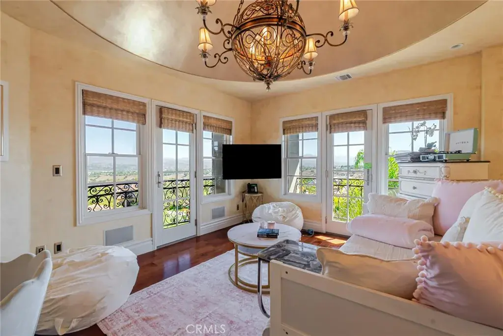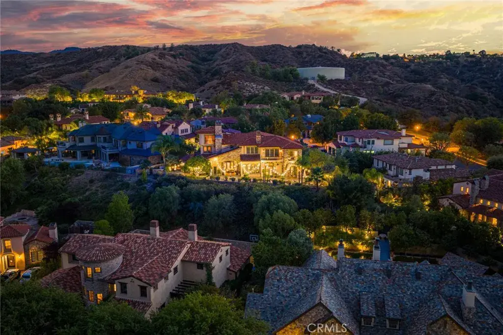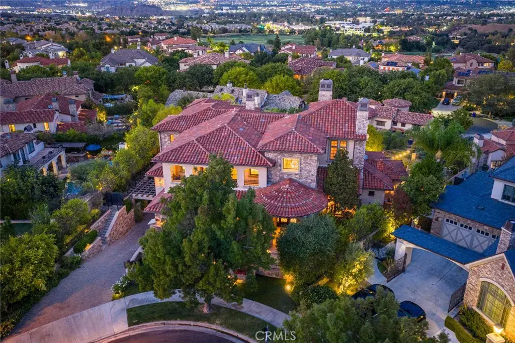 There are maybe a handful of custom homes in the guard gated Westridge Valencia community on over 1/3 of an acre with a cul-de-sac location & panoramic views of the valley. You would be hard pressed to find one of the quality, design and jaw dropping features of 25711 Shady Oak. There are 3 distinct levels to enjoy in this masterpiece, each thoughtfully designed for function and impressive in a way that’s hard to describe. The first level (subterranean) features the amazing game room (ping pong, air hockey, slot machines, pool table all stay), the private movie theater (you have to see it) yoga room (which was a tea room with retractable table for service should you desire) full bath (one of 8),12-car garage with car chargers and half bath for convenience. It’s safe to say it’s unequaled in the community. Take the elevator (or stairs) to the main level and enjoy a first floor guest suite with private entrance, kitchenette and living room. Perfect for parents or guests wanting privacy. There are two other large bedrooms on the main level, and all 7 bedrooms have private baths. The remodeled kitchen is light and bright with tons of windows to enjoy the amazing views of the valley. All the highest quality finishes and appliances of course and powered by a 600-amp commercial panel, a testament to the many examples of the best of the best used in the 4 years it took to build this home. Custom Lutron lighting throughout and each bedroom has access to its own heat or air. One button to push and you are good to go. The amazing entrance with 25-foot ceilings features a gorgeous crystal chandelier so the home is both amazingly constructed and aesthetically spectacular. The primary bedroom has a private covered deck with maybe the best views of all, huge walk-in closet and attached security closet. Private yard with pool, spa, fire pit and best of all a fully covered second kitchen with private fireplace, Wolf stove, Teppan grill & a final full bath so you don’t need to go inside to shower off. How thoughtful! The community is coveted for access to the golf course, great schools and quick access to the freeway. All with 24-hour guard gated security and all the amenities Valencia is loved for. Truly, what a home!