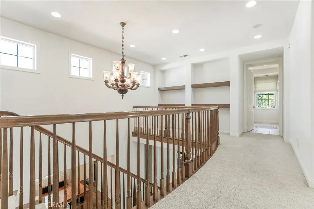 A downstairs en suite bedroom and a dedicated office provide flexible options for guests or work-from-home needs. A dramatic staircase with a high ceiling adds architectural volume and natural light as you transition to the upper level. Upstairs, a generous loft serves as a central retreat connecting four bedrooms, including one with its own en suite bath. A convenient laundry room enhances functionality.