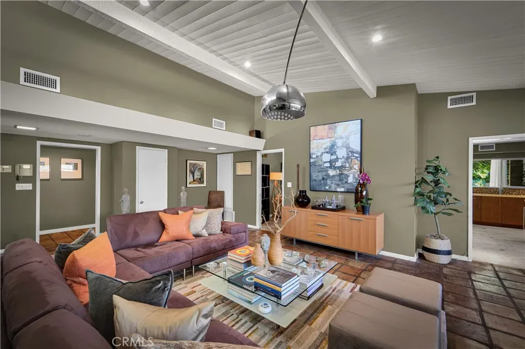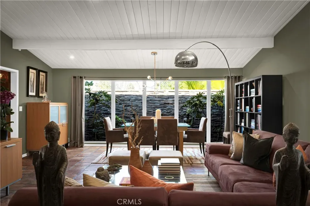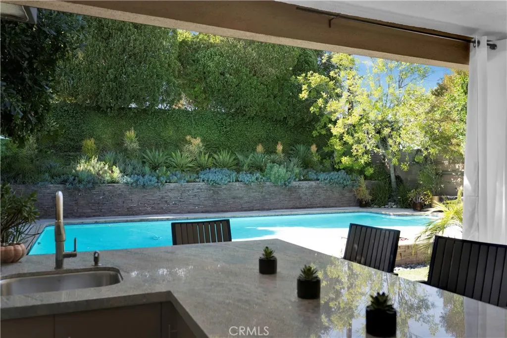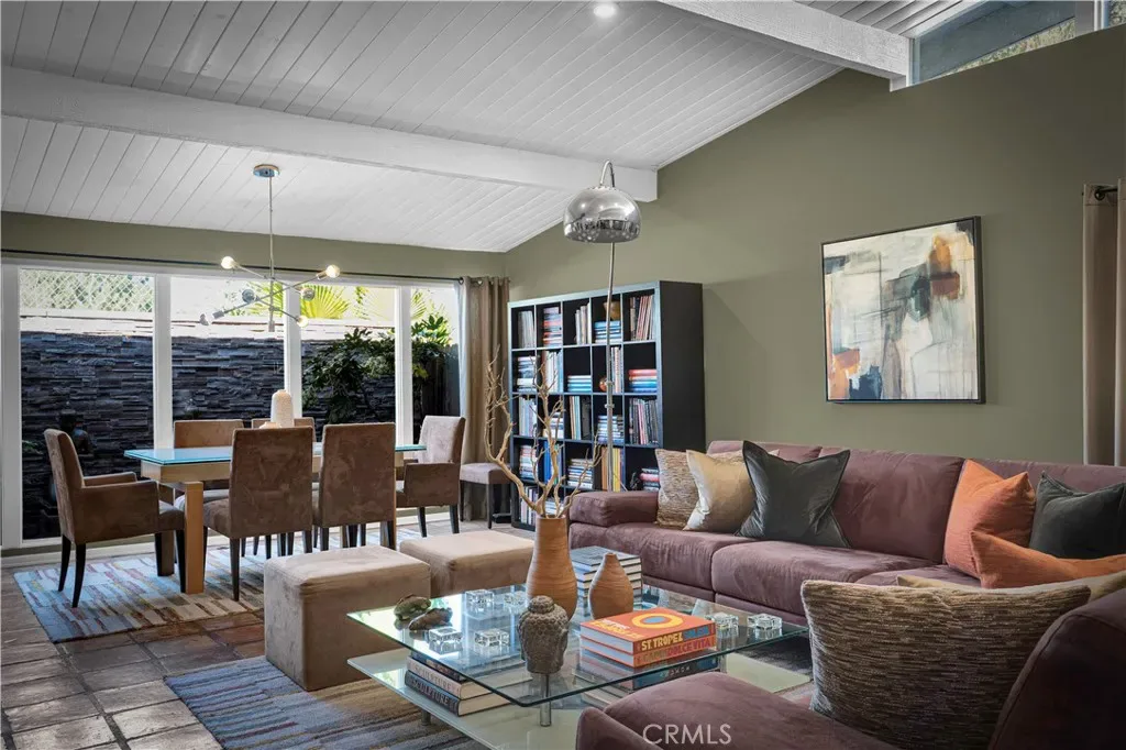 6119 Mary Ellen is all about clean Mid-Century Modern vibes beginning with the clerestory windows – the hallmark of MCM architecture. Upon entering the 4 bedroom 2 bath 2,046 sqft pool home, these windows allow light to flood the living/dining room while maintaining privacy. Dine by the window wall that looks out upon the serene side yard garden with custom stacked stone wall. The living room and dining area feature a vaulted, beamed tongue and groove ceiling and earthy tile floors. The updated kitchen boasts flat-panel cabinetry, under cabinet lighting, NEW dishwasher, quartz countertops, travertine floors, breakfast bar, custom bar area, washer/dryer and plenty of storage. Opening to the kitchen, the family room has access to the covered outdoor kitchen, lanai, pool and beautifully landscaped backyard. Entertain year-round in this gorgeous setting that feels like resort! All 4 bedrooms are off the same hall on the south side of the home. The main ensuite has access to the backyard, a custom closet/dressing area and spa-like bathroom complete with elegant tub and shower ‘wet room.’ The updated hall bath easily services the 3 additional bedrooms and has dual sinks, limestone counters, soaker tub/shower and travertine floors. Enjoy the privacy this swanky home offers located at the end of the cul-de-sac in one of Valley Glen’s finest neighborhoods, and just steps away from the beautifully maintained Valley Glen Community Park. Easy access to freeways, NoHo West and Valley College. Hurry! See this one before it is going going gone!