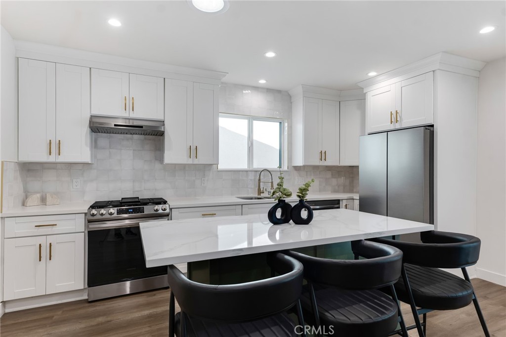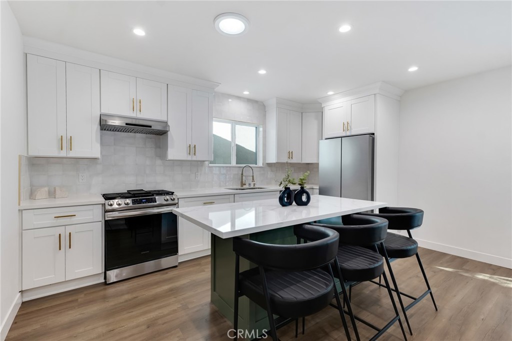 Be the first to live in this stunning, brand-new, tastefully designed two-bedroom, two-bath home located behind gates in one of Valley Glen’s most desirable neighborhoods. Step inside and be immediately wowed by the attention to detail and high-end finishes throughout. The home features beautiful wood laminate flooring and an open-concept living space perfect for comfortable living and entertaining. The beautifully remodeled chef’s kitchen showcases custom quartz countertops, a stylish tiled backsplash, stainless steel appliances, and elegant gold finishes. The refrigerator, stove, oven, range, and dishwasher are all included. The spacious primary suite offers a private retreat with a large walk-in closet and a beautifully remodeled en-suite bathroom featuring custom tile, a brand-new vanity, and luxurious gold accents. The second bedroom also enjoys its own brand-new bathroom with modern tile finishes. Additional features include a private laundry room with washer/dryer hookups and a large private patio—perfect for relaxing or entertaining. Furniture purchase is optional, offering the opportunity to move right in with ease.