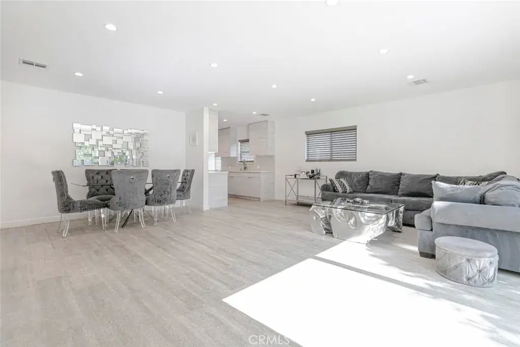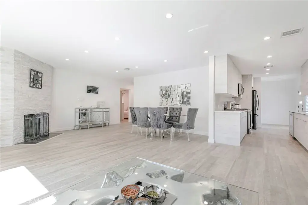 Step inside to a bright, open-concept floor plan filled with tasteful upgrades. The living room boasts newer flooring, a sleek modern fireplace, and an expansive front window that floods the space with natural light.