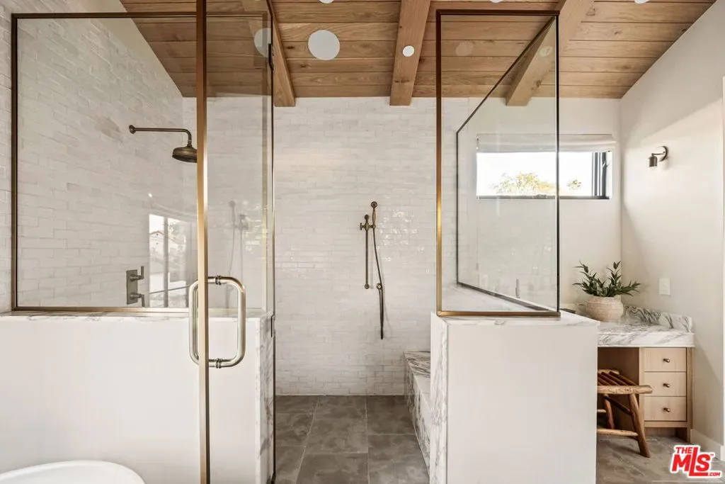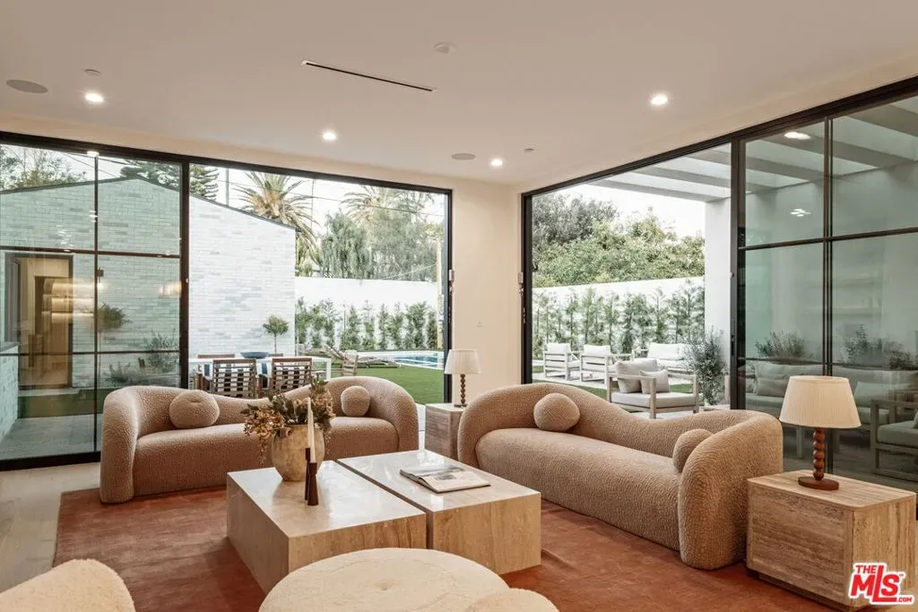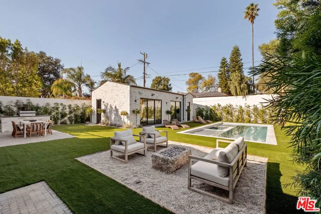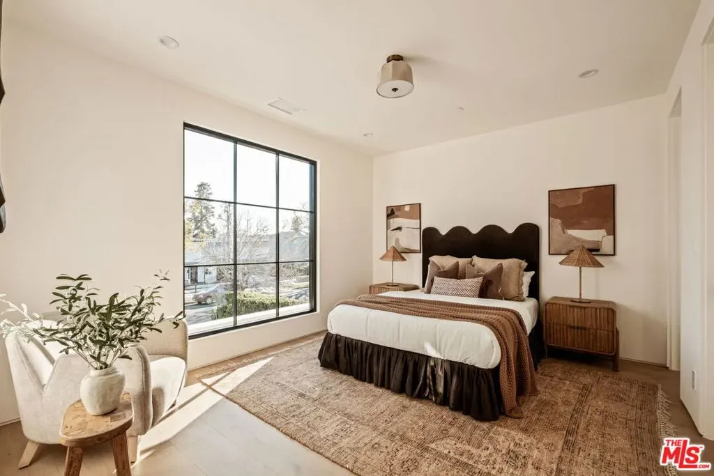 Tucked in the heart of Valley Village, this newly built estate showcases approximately 4,800 square feet of thoughtfully designed living space, complemented by a 700-square-foot detached ADU. The six-bedroom, seven-and-a-half-bath residence blends clean, modern lines with warm finishes, featuring a luxurious primary suite with a spa-like bath, spacious walk-in closet, breakfast bar, and private balcony. The open-concept layout centers around a stunning chef’s kitchen outfitted with a La Cornue range, custom cabinetry, marble accents, and a walk-in pantry, flowing seamlessly into expansive living and dining areas, along with a private theater and Control4 smart home integration. The detached ADU includes a full kitchen and one-bedroom, two-bath layout, while the resort-style backyard offers a pool with Baja shelves, spa, pool bath, built-in BBQ, and fire pit – all just moments from top dining, shopping, and schools.