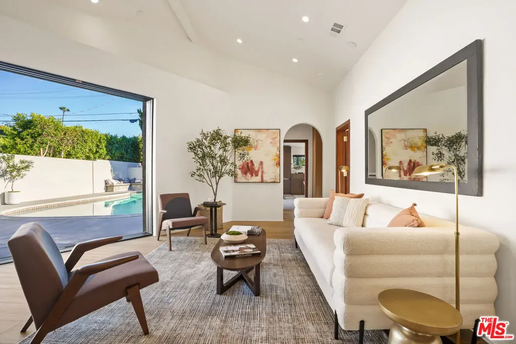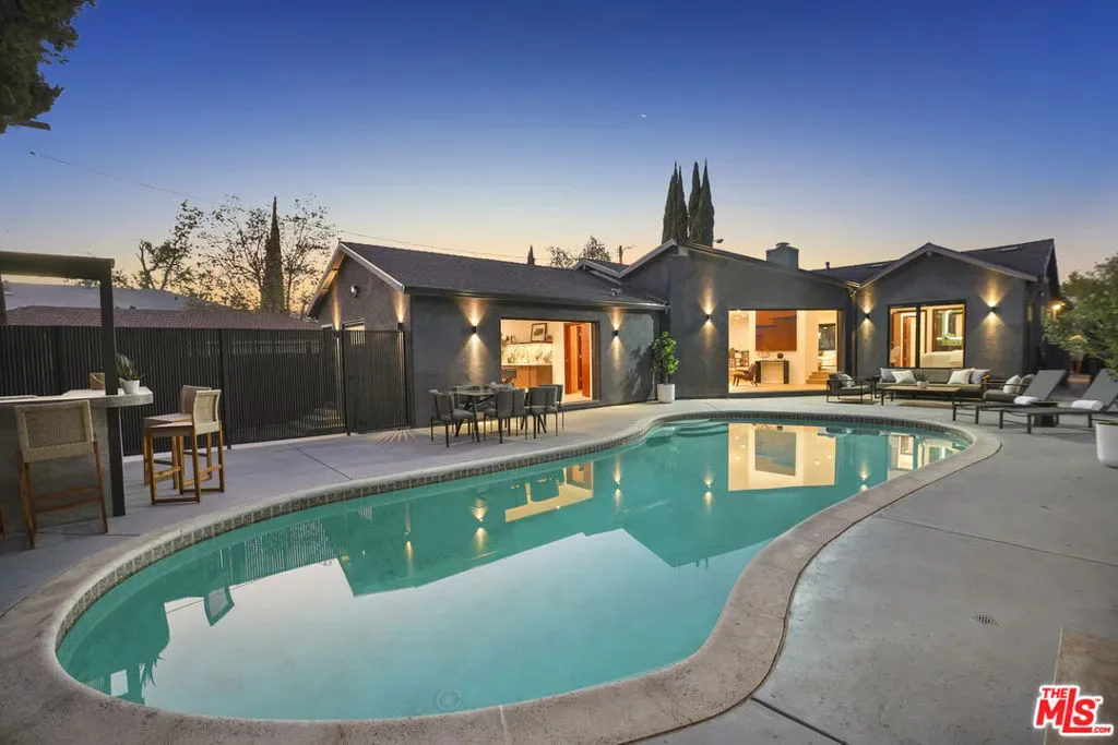 From the studs up, a spectacular rebuild, redesign and reimagining by the current owners, for the current owners brings contemporary luxury to the most sought after neighborhood in Valley Village. No detail overlooked; no expense spared. With a peerless blend of rich, organic materials and the finest quality elements thoughtfully selected, the home embodies extraordinary style with stellar modern design. Hip, relaxed, refined with a stylistic identity all of own. Simplicity is the ultimate sophistication as bold, clean lines of the exterior extend into the interior where artful form follows high function. Fusing open space with stylish details, the primary living and entertaining areas become one in light, luxury and comfort with the modernist devotion to connecting the indoors to the out. Opulent day spa inspired baths feature exquisite on trend designs in lighting, fixtures, and finishes. The epicurean kitchen is a superbly scaled open concept culinary center designed for the adventurous at home chef with a full complement of state-of-the-art Fisher & Paykel stainless steel appliances and grand center island/breakfast bar. Opening to the great room and adjoining dining area, it becomes the perfect gathering space for friend and family gatherings. Massive disappearing walls of glass provide sublime open air living and bridge the aesthetic divide between structure and nature. Revealed is an idyllic private backyard oasis replete with sparkling pool, dining and lounging patio, built in conversation bench and pool bar perfect for the Southern California lifestyle of endless al fresco leisure and limitless outdoor entertaining. Modern systems and infrastructure ensure the home lives as beautifully as it looks. Located in the award winning Colfax Charter School District (ranked the 9th best charter school in California!) and just moments from beloved Valley Village Park, major film and TV studios, and the NoHo Arts District. This compelling contemporary urban retreat awaits in one of The Valley’s most sought after neighborhoods. Welcome!