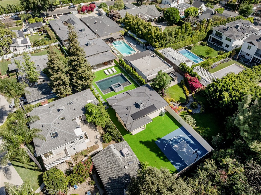 A fully detached 2-bedroom ADU offers flexibility for guests, a private office, or gym. The grounds also include a sports court with surrounding open space, allowing for multiple uses.